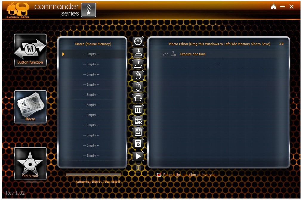 Im Untermenü „Button function“ kann man also die Tastenbelegung einstellen. Neben den „normalen“ Klicks gibt es eine breite Auswahl. So lassen sich die Tasten zur Steuerung des Media Players belegen, Befehle zum Ausschneiden und Einfügen verwenden, bestimmte Tastatur-Tasten auf die Maus legen, oder sogar Makros programmieren die mehrere Befehle hintereinander ausführen. Der Belegung der Maustasten sind quasi keine Grenzen gesetzt – man kann alles mit der Ballista MK-I machen! Da man 5 verschiedene Mapping-Sets anlegen kann stehen bis zu 50 Tastenbelegungen zur Verfügung – theoretisch kann man also sogar locker mit der Maus schreiben wie mit einer Tastatur. Ihr könnt eurer Kreativität hier freien lauf lassen.