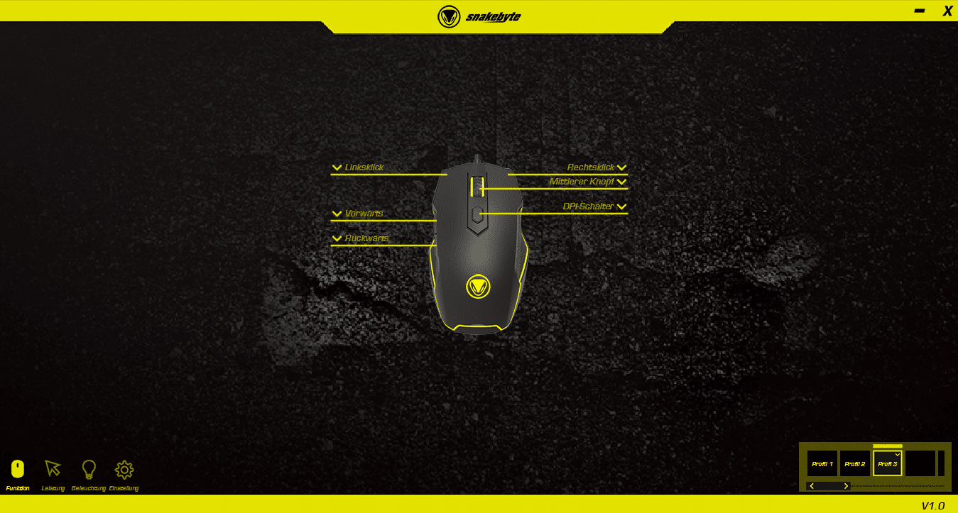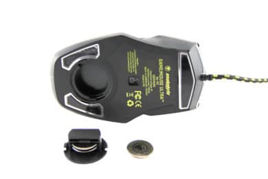 Die GAME:MOUSE ULTRA ist mit drei zusätzlichen Tasten ausgestattet. Neben den drei Standardtasten findet sich eine über dem Mausrad und zwei auf der linken Seite. Diese lassen sich alle den eigenen Wünschen über die herunterladbare Software belegen. Diese verhindert übrigens, dass man versehentlich den Linksklick aus der Belegung seiner Maus entfernt.