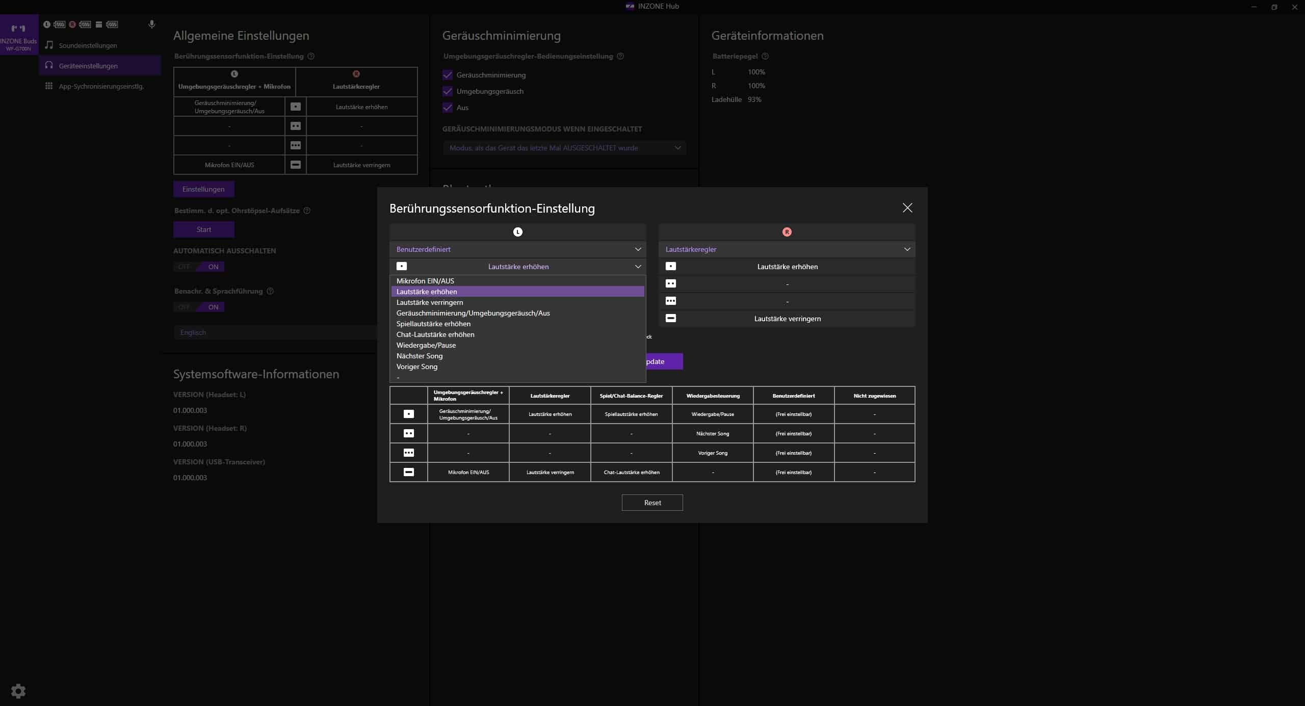Rechts hingegen lässt sich die Lautstärke erhöhen (einmaliges Drücken) beziehungsweise verringern (Gedrückt halten). In Verbindung mit der Begleit-Software Inzone Hub für den PC kann die Steuerung allerdings auch vollkommen frei konfiguriert werden – sehr löblich.