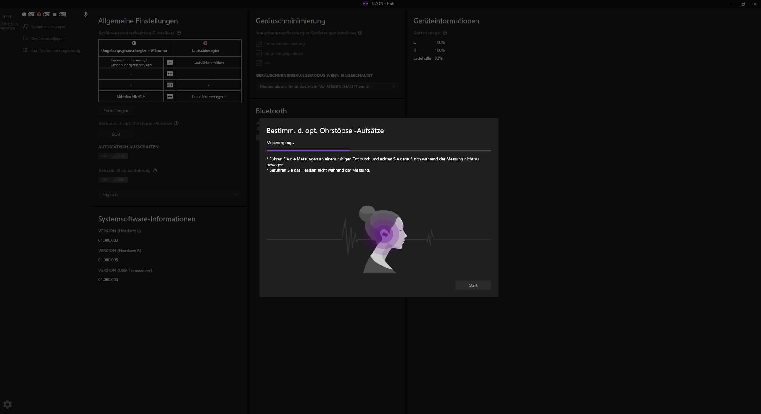 Die Begleit-App informiert über den Ladestand der Earbuds sowie des Case und ermöglicht unter den Geräteeinstellungen beispielsweise eine vollständige Anpassung der Bedienung. Außerdem kann hier mithilfe eines kurzen Tests geprüft werden, ob die genutzten Ohreinsätze gut gegen Umgebungsgeräusche abdichten.