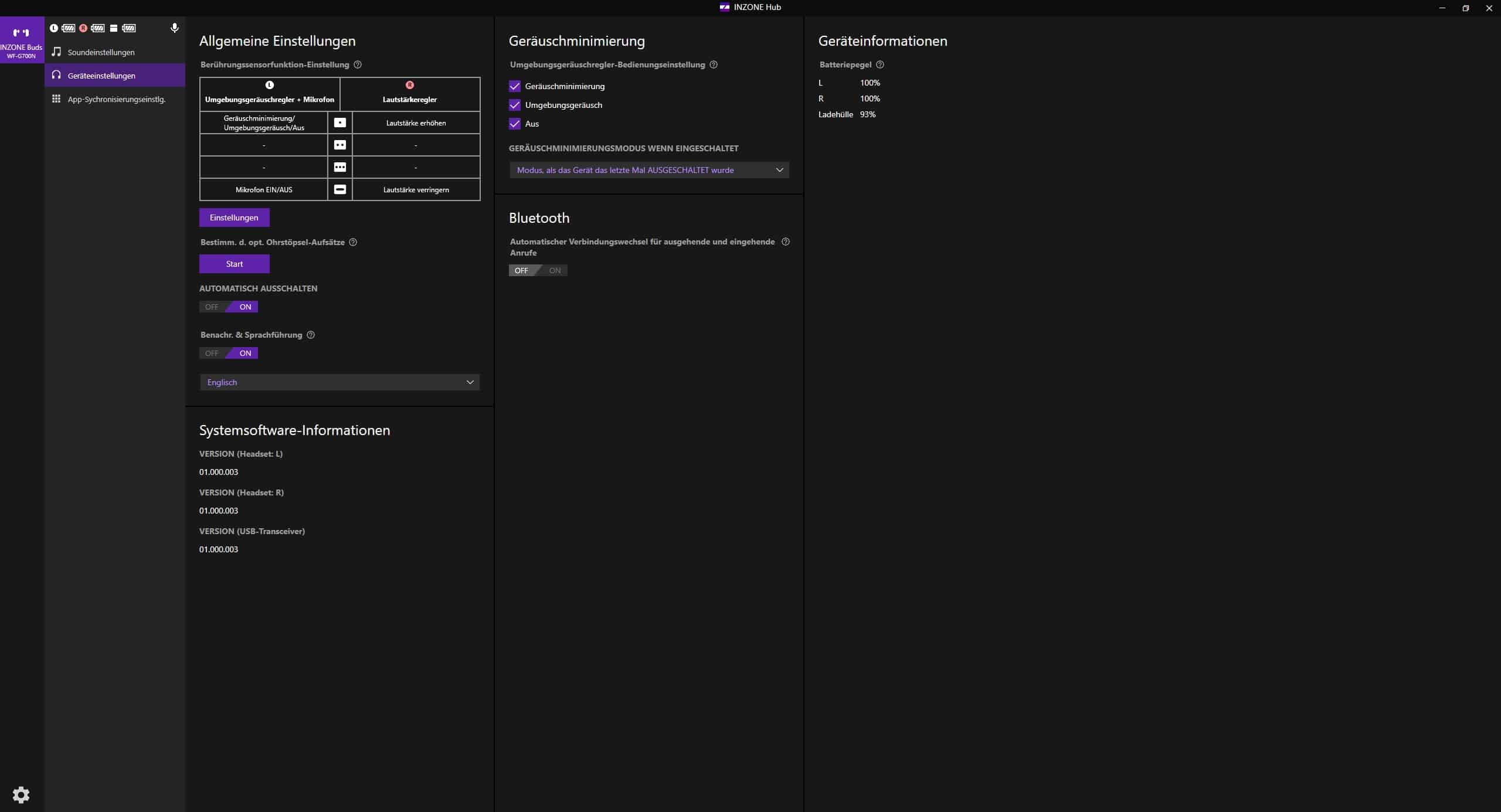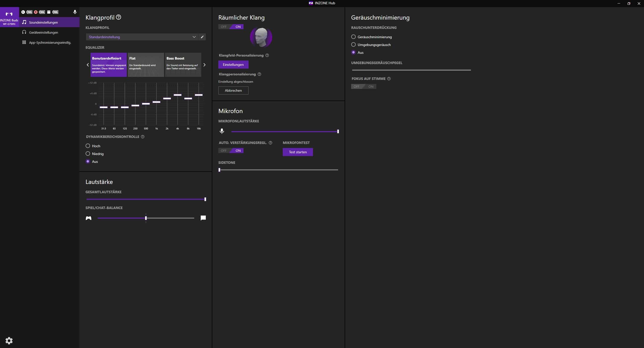 Überraschenderweise verzichtet Sony bei den Inzone Buds auf eine Smartphone-App. Auch in der Headphones Connect-App sind die Earbuds nicht auffindbar. Dafür kommt am PC der bereits bekannte Inzone Hub zum Einsatz, der mit einem aufgeräumten Interface aufwartet.