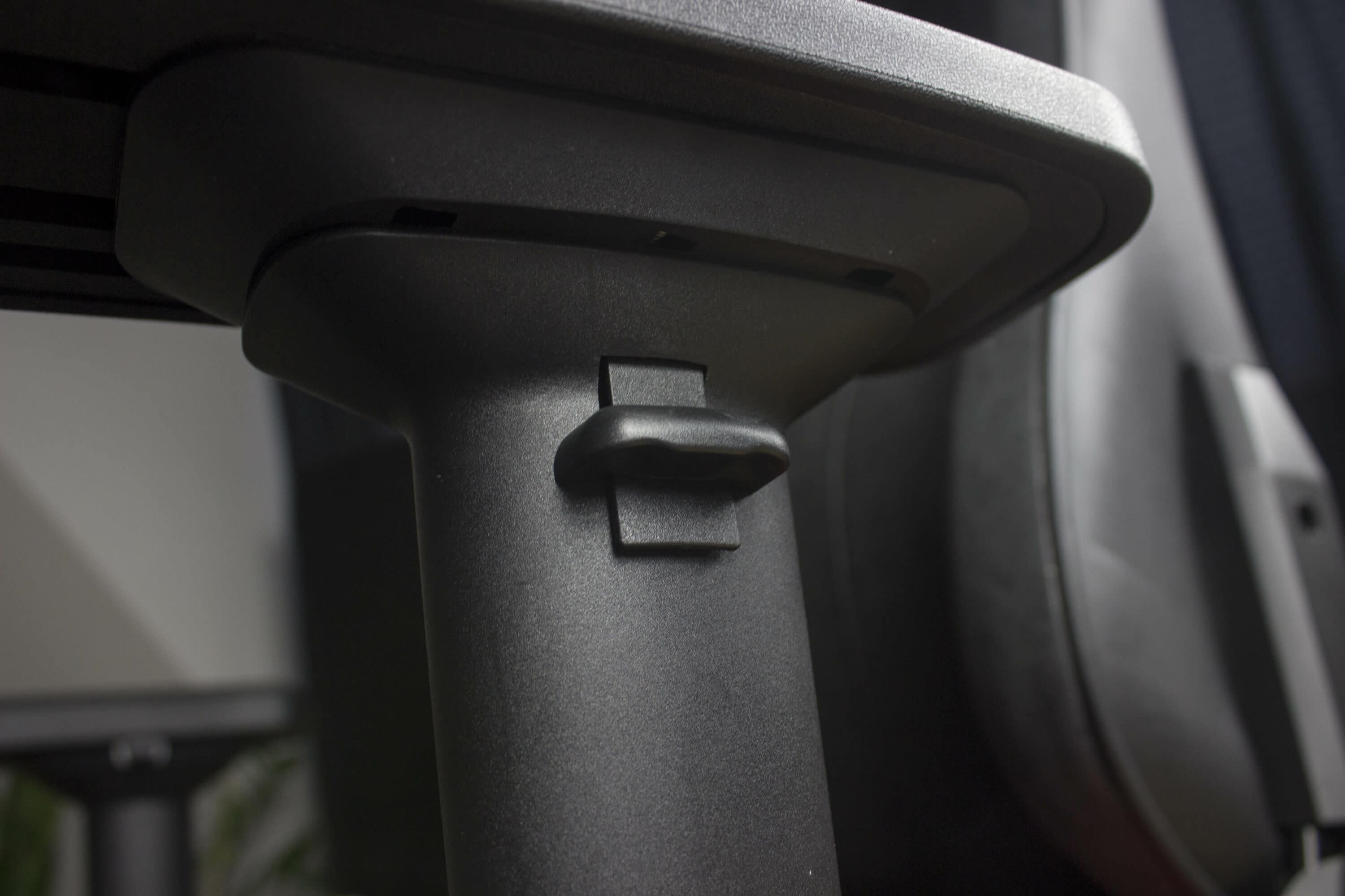 Leider wird die Optik durch das PU-Leder etwas in Mitleidenschaft gezogen. Dieses sieht schon etwas „mitgenommen“ aus, auch wenn der Stuhl produktionsfrisch bei uns angekommen ist. Dafür fühlt sich das Material wiederum sehr hochwertig an.