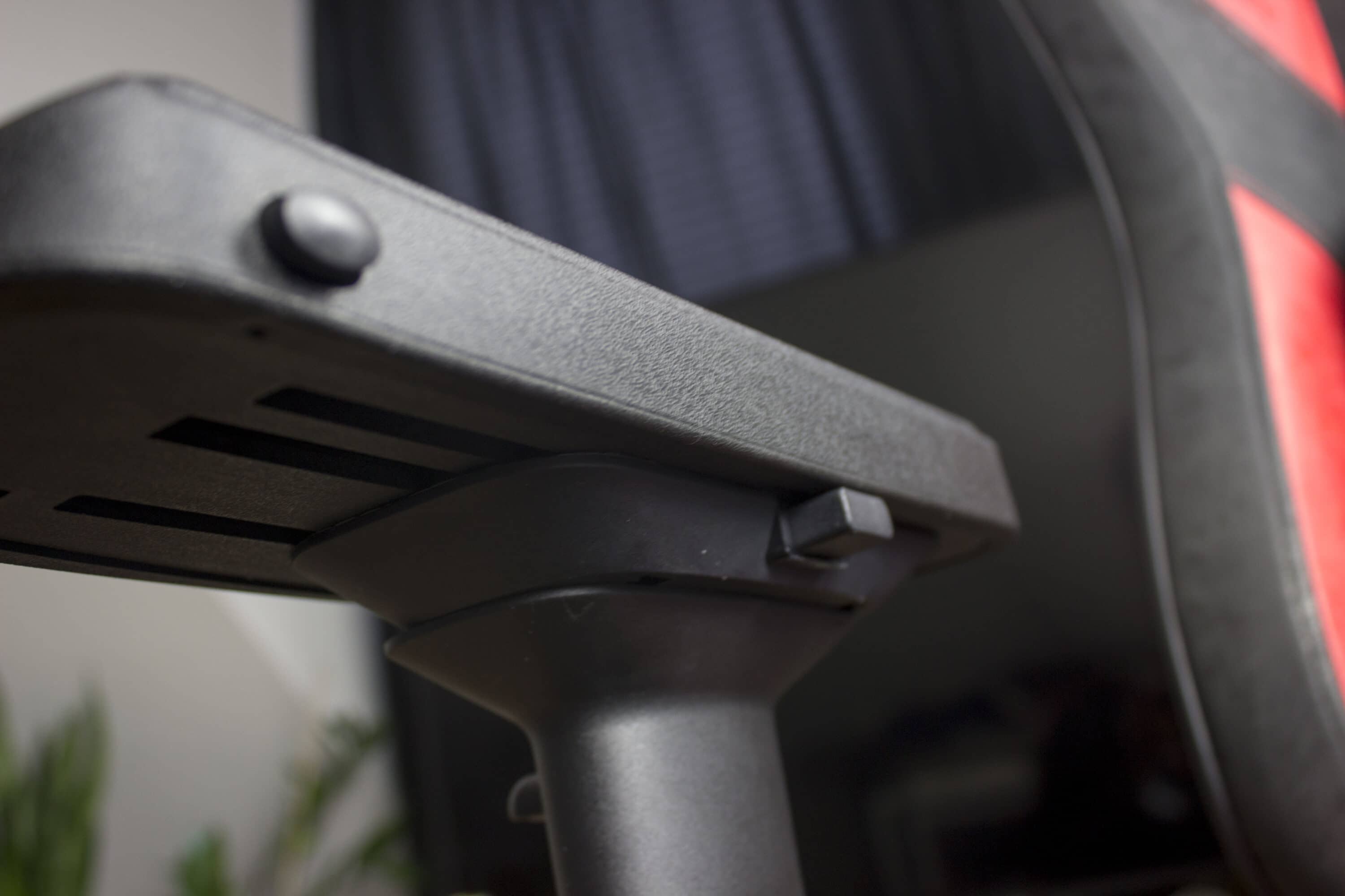 Einen weiteren Punkt den wir nicht außer Acht lassen können, sind die Rollen. Gerade im billigeren Segment sind sie häufiger der Schwachpunkt, weil sie schlecht verarbeitet oder schwer zu rollen sind. Da sich der SPC Gear SR600 RD mit 249 Euro nicht unbedingt im High-End-Segment befindet, haben wir hier auch ein besonderes Auge drauf. Die Rollen sind aber wirklich gut und der Stuhl lässt sich bequem mit einer Hand in die gewünschte Position rollen. Auch wenn wir auf dem Stuhl sitzen, lässt er sich wirklich leicht rollen, ohne viel Kraft aufwenden zu müssen.