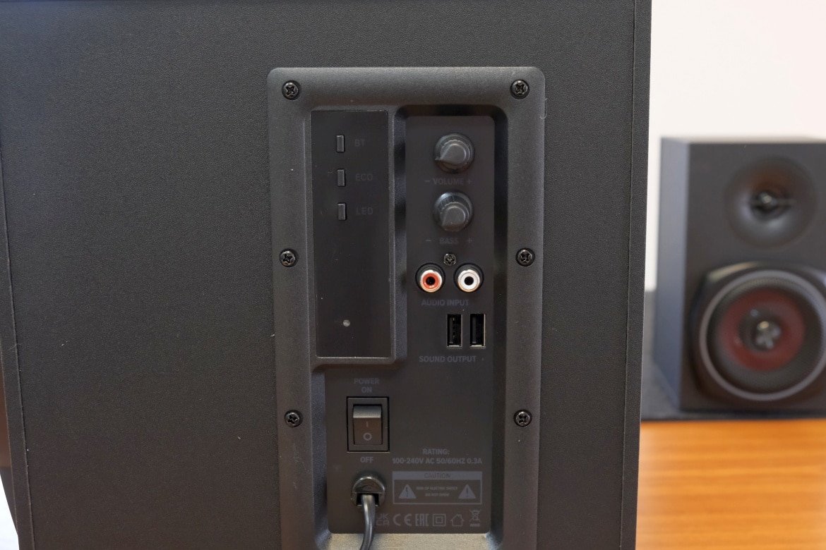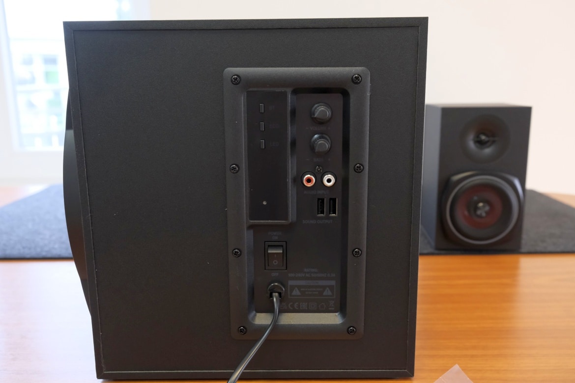 Bedienung und Ersteinrichtung der 2.1-Anlage sind hingegen kinderleicht. Einfach die Satteliten mit dem Subwoofer verbinden, Stromkabel in die Steckdose stecken, einschalten und schon kann es losgehen. Zusätzliche Installationsschritte oder eine komplizierte Einrichtung entfallen.
