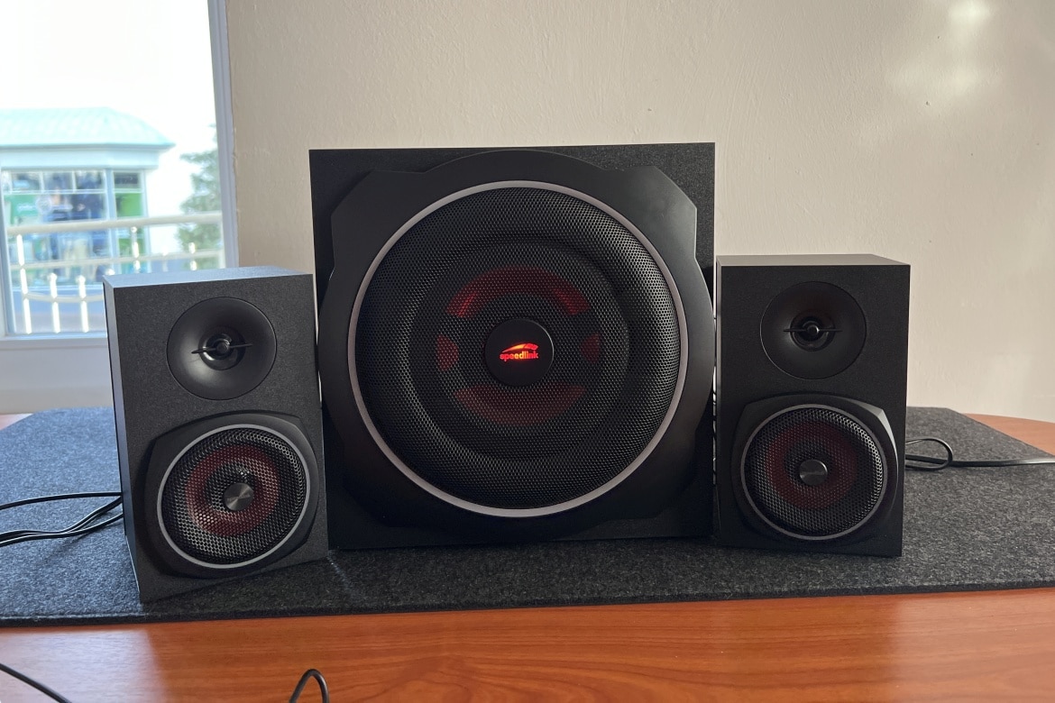 Klanglich zeichnet die Speedlink Gravity RGB 2.1-Anlage ein gutes Bild ab und überzeugt im Hinblick auf den Preis vor allem mit einem satten Bass. Mit dem Hochdrehen des Bass-Reglers sollte man also vorsichtig sein. Dreht man den Tieftöner auf Anschlag, dürfte der deutsche Rapper Das Bo in seinem Klassiker „Türlich, Türlich“ jedenfalls nicht mehr nach mehr Bass fordern.