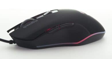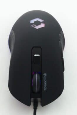 Angenehm ist zudem das von Speedlink mitgelieferte, einfache Kautschuk-Mauspad. Dieses ist schlichte Standardware: Mäuse gleiten leicht über die Oberfläche und mit der Fläche von 24 auf 31,5 cm dürfte das Mauspad für die meisten auch groß genug sein. Zu bedenken ist lediglich, dass das Mauspad leicht eingeknickt geliefert wird. Nach einigen Tagen auf einer glatten Oberfläche ist das Pad aber wieder flach.