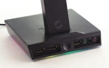Etwas enger ist hingegen der Nutzungsbereich von Speedlinks neuem Headset-Ständer Excello, der für € 27,04 * [Testzeitpunkt: 25 Euro] angeboten wird. Dieser sticht insbesondere durch die verbaute Soundkarte hervor, die an niederohmigen Wiedergabequellen aber mitunter ein Grundrauschen aufweist – hier kann ein nachträglicher Vorwiderstand helfen. Abseits davon ist beim Kauf des Excello wohl insbesondere der eigene Geschmack entscheidend, denn in erster Linie ist ein Headset-Ständer ja ein optisches Accessoire. Prinzipiell spricht auf alle Fälle nichts dagegen – besonders gefielen uns beispielsweise die RGB-Bodenbeleuchtung und der Anschluss über ein einzelnes Kabel.