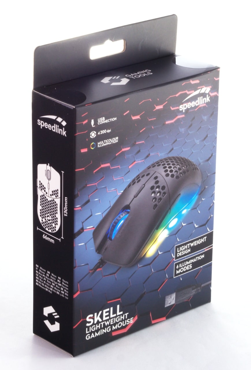 Leichte Gaming-Mäuse sind im Trend, und so hat auch Speedlink kürzlich ein entsprechendes Modell vorgestellt. Im Oktober kam die Skell genannte und nur 73 g schwere Maus mit gelochtem Gehäuserücken auf den Markt. Dabei werden für das Produkt derzeit nur € 34,61 * [Testzeitpunkt: 20 €] verlangt, womit sich die Maus insbesondere an das Einstiegssegment richtet. Dafür verspricht Speedlink, neben dem besagten, leichten Gewicht, eine RGB-Beleuchtung, die üblichen Zusatztasten sowie einen nicht näher genannten Sensor mit maximal 4.200 DPI.