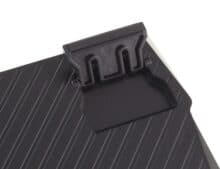 Das Gehäuse der Speedlink Vela besteht aus einer mattschwarzen Kunststoffwanne. An der Unterseite in mehreren eingelassenen Streifen sowie an den seitlichen Abschrägungen ist das Gehäuse hingegen in Hochglanz gehalten. Im Betrieb ist davon aber kaum etwas zu sehen, denn die gesamte Oberseite der Tastatur wird von einer mattschwarzen Metallplatte bedeckt. Diese ist an den Seiten nach unten hin abgeschrägt, und als außerdem ist über den Pfeiltasten das Speedlink-Logo aufgedruckt.