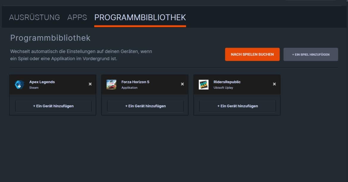 Als praktisches Features erweist sich einmal mehr die Programm-Bibliothek innerhalb der SteelSeries GG Software, dank der wir verschiedenen Spielen oder Programm unterschiedliche Profile der Maus zuweisen können.