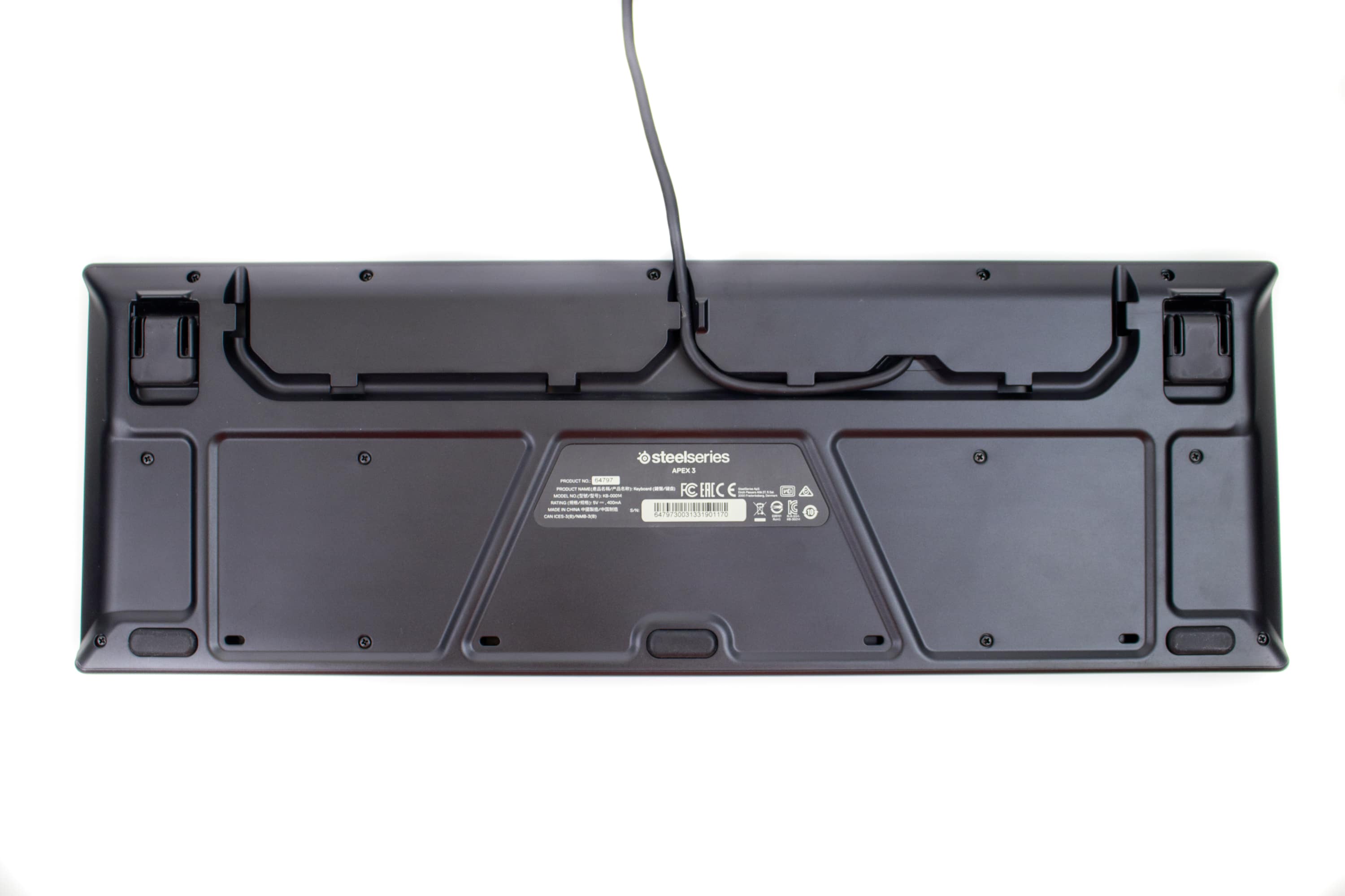 Das Gehäuse der Apex 3 besteht aus Kunststoff, auf Metallelemente wird verzichtet. Dennoch wirkt sie nicht billig. Der Kunststoff fühlt sich angenehm an und die Tastatur ist mit 816 Gramm auch nicht extrem leicht, sodass sie sich doch hochwertig anfühlt. Durch die gummierten und aufstellbaren Füße an der Unterseite hat sie zudem einen sicheren Stand.