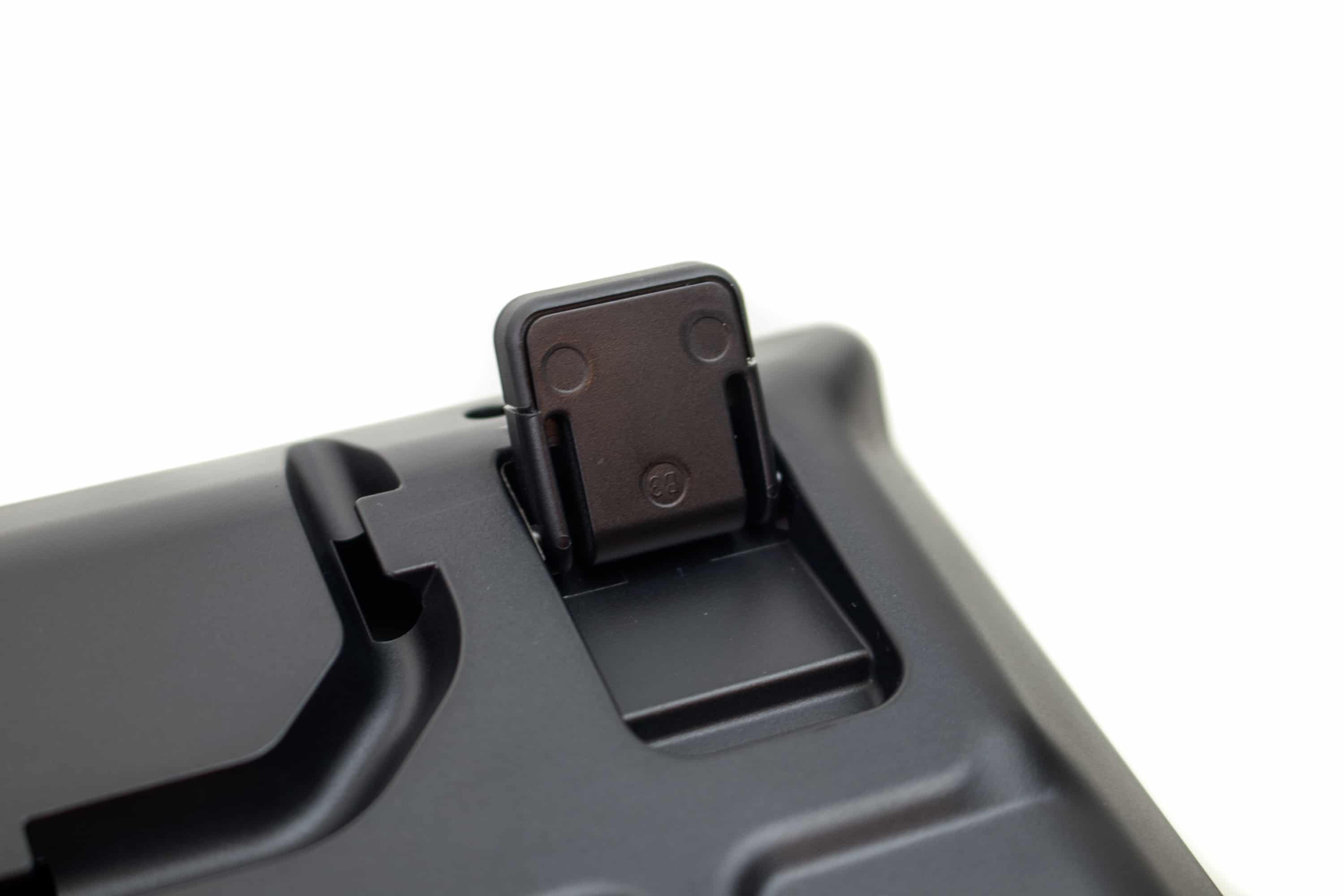 Mit Maßen von 39,69 x 444,7 x 151,62 Millimeter ist die Tastatur durchschnittlich groß für eine Fullsize-Tastatur. Die solide, magnetische Handballenauflage ergänzt die Tastatur nach Bedarf um weitere acht Zentimeter.