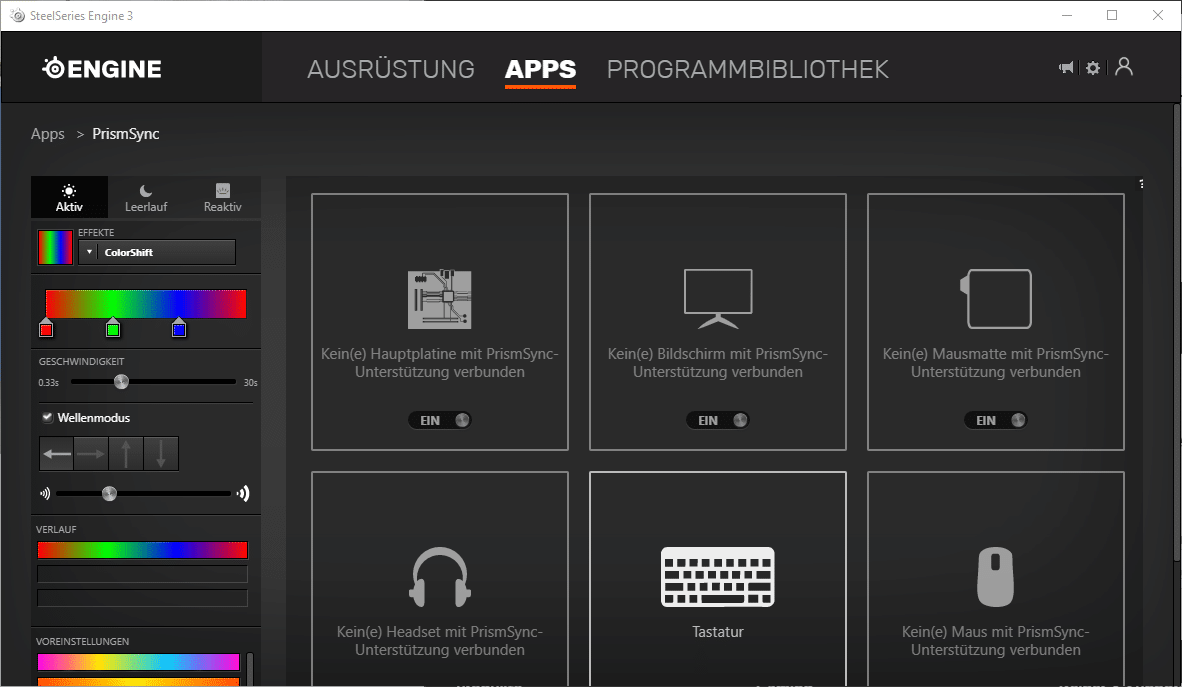 Die Beleuchtung kann auch mit diversen Spielen synchronisiert werden und über Prismsync ist natürlich auch eine Synchronisierung mit weiteren Geräten möglich. Die Änderung der Farbe bei bestimmten CS:GO-Ereignissen? Kein Problem. Ein Regenbogen-Effekt, der sich über Maus, Tastatur und Mauspad bewegt? Auch das klappt einwandfrei. Die SteelSeries Engine 3 hat uns noch nie im Stich gelassen.
