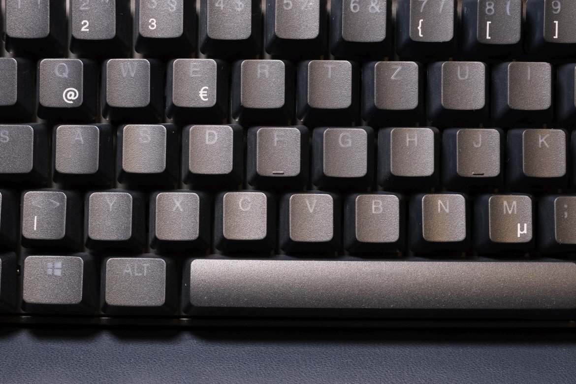 Die Tastenschalter ruhen auf einer robusten Aluminiumplatte in Luftfahrtqualität, die besonders robust und langlebig sein soll. Hinzu gesellen sich die bereits bekannten, hochwertigen PBT-Tastenkappen die nicht nur lichtbeständig sind, sondern eine einzigartige und griffige Struktur aufweisen, die für eine angenehme Haptik sorgt und das Tippgefühl unterstützt.