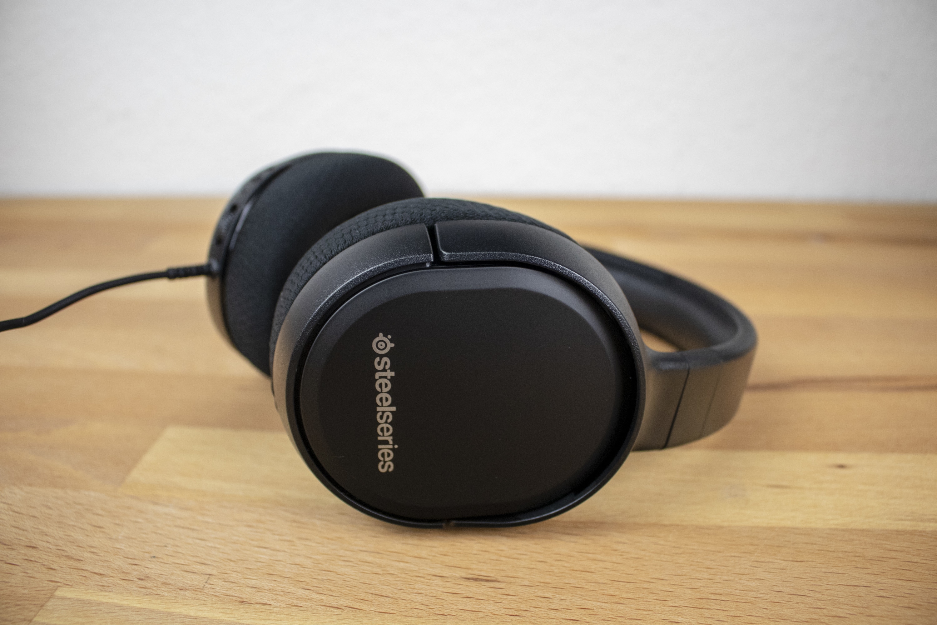 Der Kopfbügel des Headsets ist mit einer vergleichsweise dünnen Kunstlederpolsterung ausgestattet. Zunächst zweifelten wir daher am Komfort des Headsets. Vergleichbare Produkte bieten mitunter eine beinahe doppelt so dicke Polsterung. Wie sich herausstellte, genügt auch der reduzierte Rahmen, den das Arctis 1 bietet, völlig, um ausreichenden Tragekomfort zu gewährleisten. Am Kopf drückte es auch nach mehrstündigem Tragen nicht. Wir waren dementsprechend positiv überrascht.