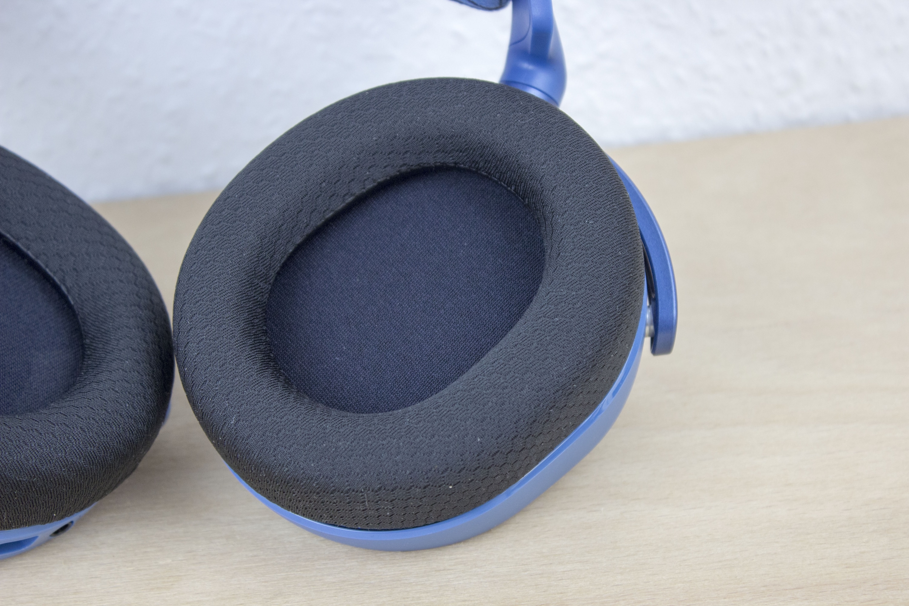 Dem Tragegefühl kommt außerdem der Bezug der Ohrmuscheln sehr zu Gute. Die Siberia-Headsets hatten bisher immer Kunstleder vearbeitet. Die Arctis-Reihe setzt auf „AirWeave“-Stoff. Dieser Bezug sorgt dafür, dass die Ohren auch bei langen Gaming-Session schon kühl und schweißfrei bleiben. Der gleiche Bezug wird auch beim Corsair Void Pro verwendet und hat mich schon dort überzeugt.