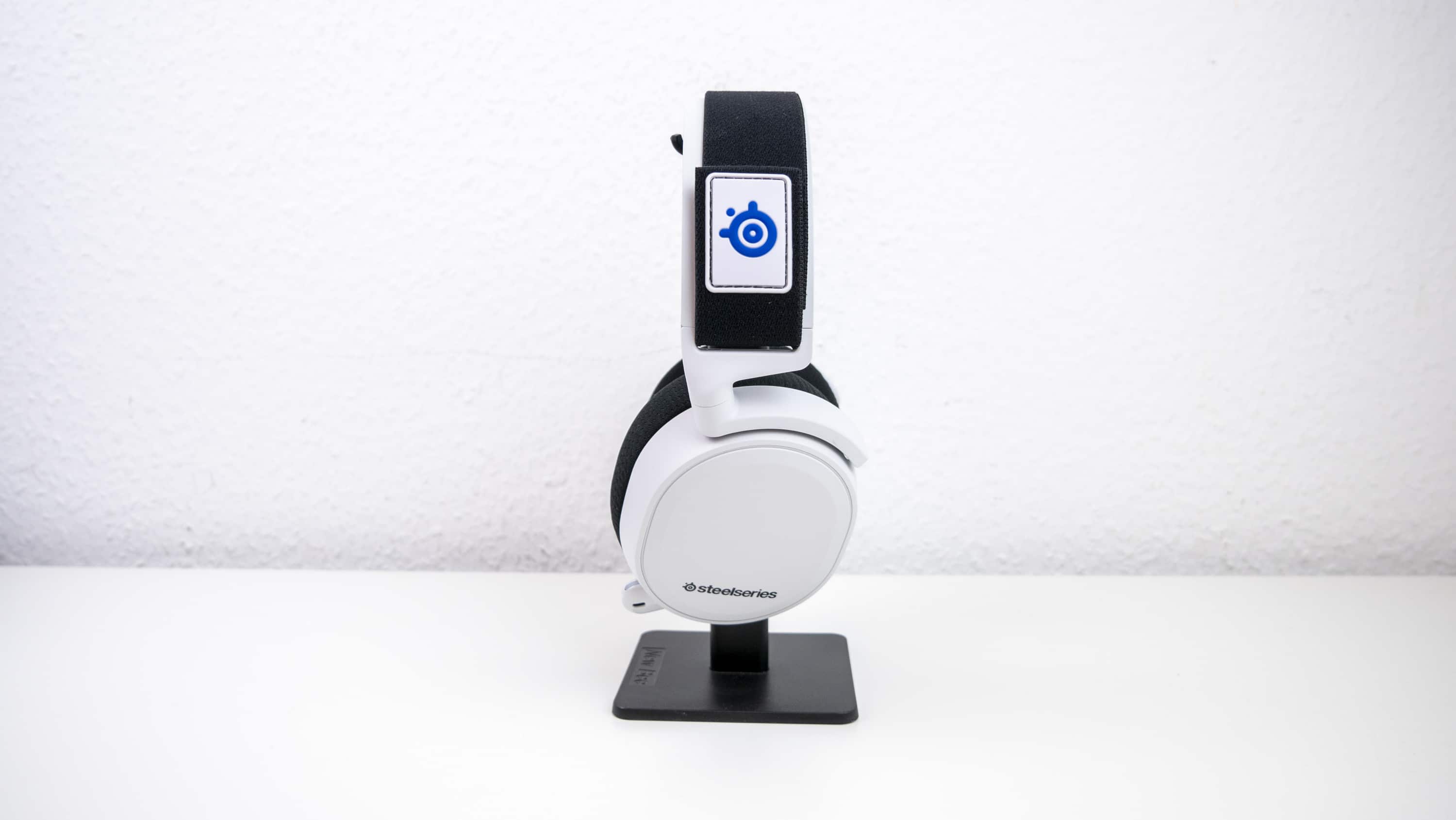 Wir halten die Spannung dezent und lösen direkt auf, was an den SteelSeries 7P’s gegenüber dem ursprünglichen Arctis 7 neu ist. Da wäre zum einen, unübersehbar, das überarbeitete Design. Wobei SteelSeries bei der Überarbeitung keine Bäume ausgerissen hat: Das Ski-Band mit Linienoptik wird durch ein rein schwarzes ersetzt, das darauf genähte Logo wechselt in ein blau auf weißem Hintergrund und der Stahlbügel bekommt eine ebenso blaue Innenverkleidung.