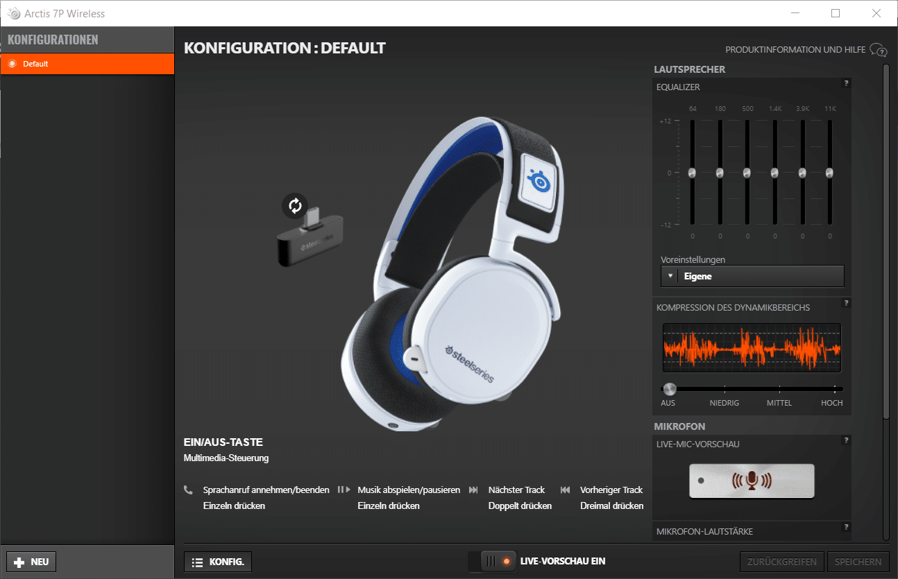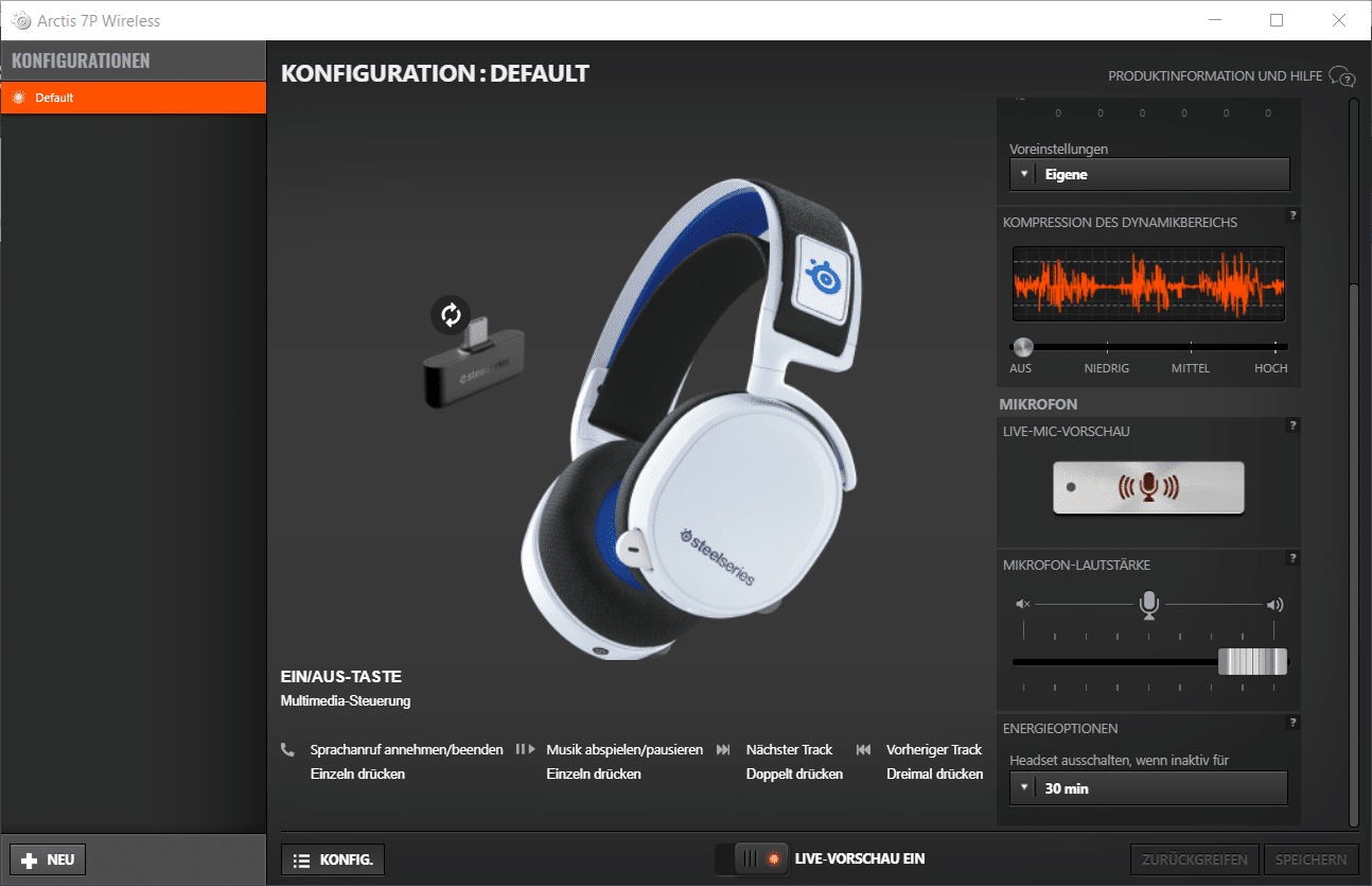 Am PC unterstützt das Headset natürlich auch wieder die SteelSeries Engine 3, allerdings bietet es nur rudimentäre Funktionen, da das Headset natürlich vor allem für die PlayStation gedacht ist. Dennoch hier ein Überblick: