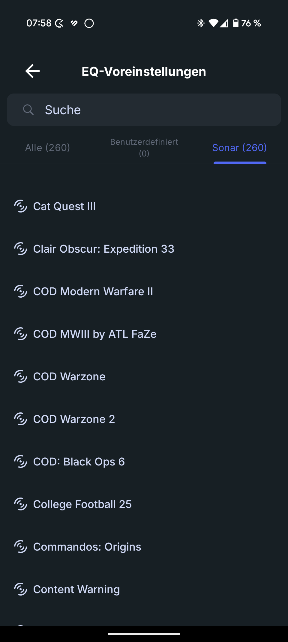 Ein Highlight sind aber zweifellos die Equalizer. Ganze 260 Presets für verschiedene Spiele, Filme oder Musik stehen die zur Wahl, um den für dich perfekten Klang zu finden. Gefühlt kommen hier jede Woche neue hinzu – SteelSeries wirbt auf der Website beispielsweise noch mit „nur“ 100+ Presets.