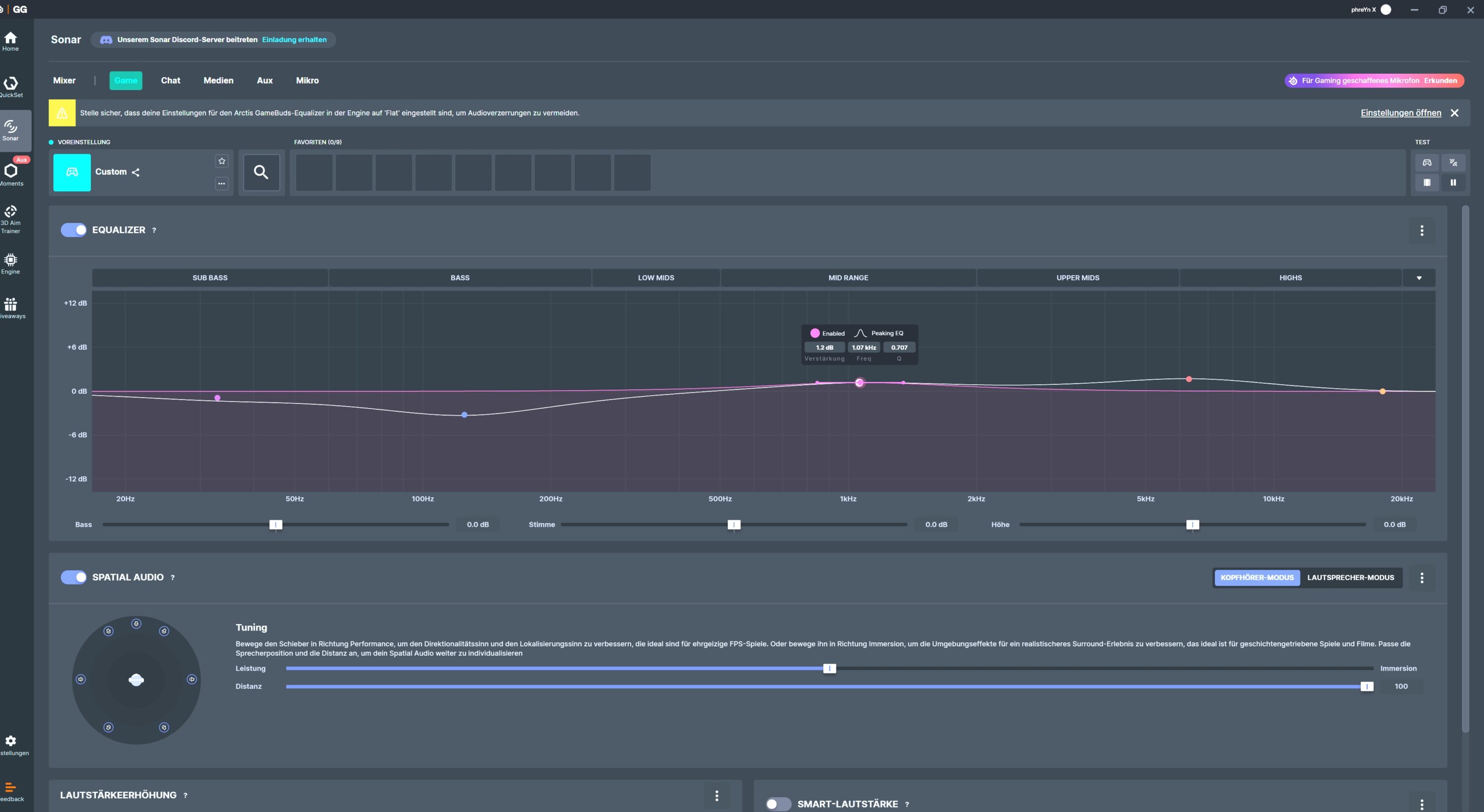 Was leider nicht möglich ist, ist die Erstellung eigener Klangprofile. Wobei: Doch, aber nur mittels Umweg an den PC. Hier kommt die klassische SteelSeries Engine/GG-Kombination zum Einsatz, die man von anderen Geräten des Herstellers kennt.