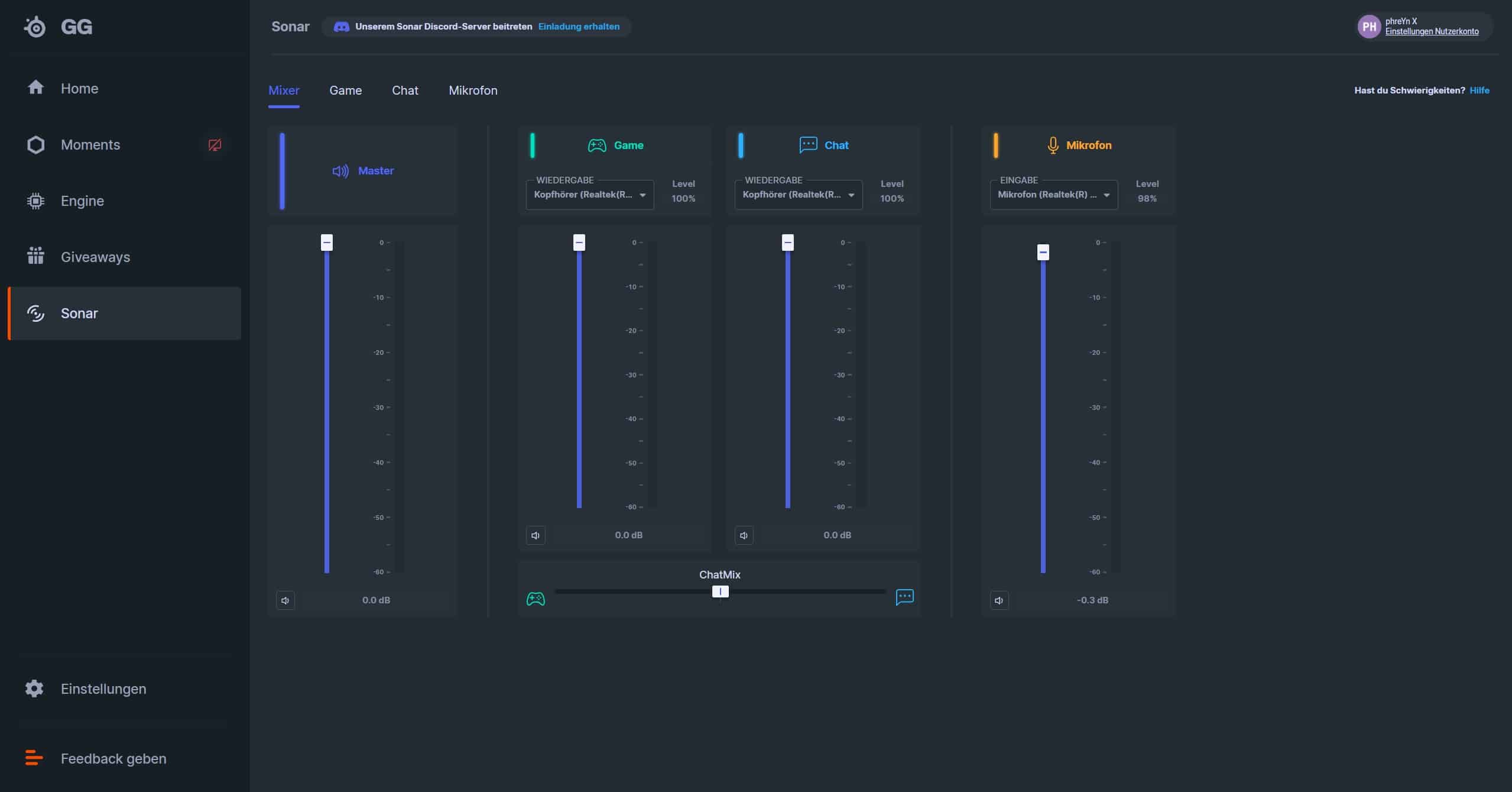 Software-Anbindung: SteelSeries GG / Sonar