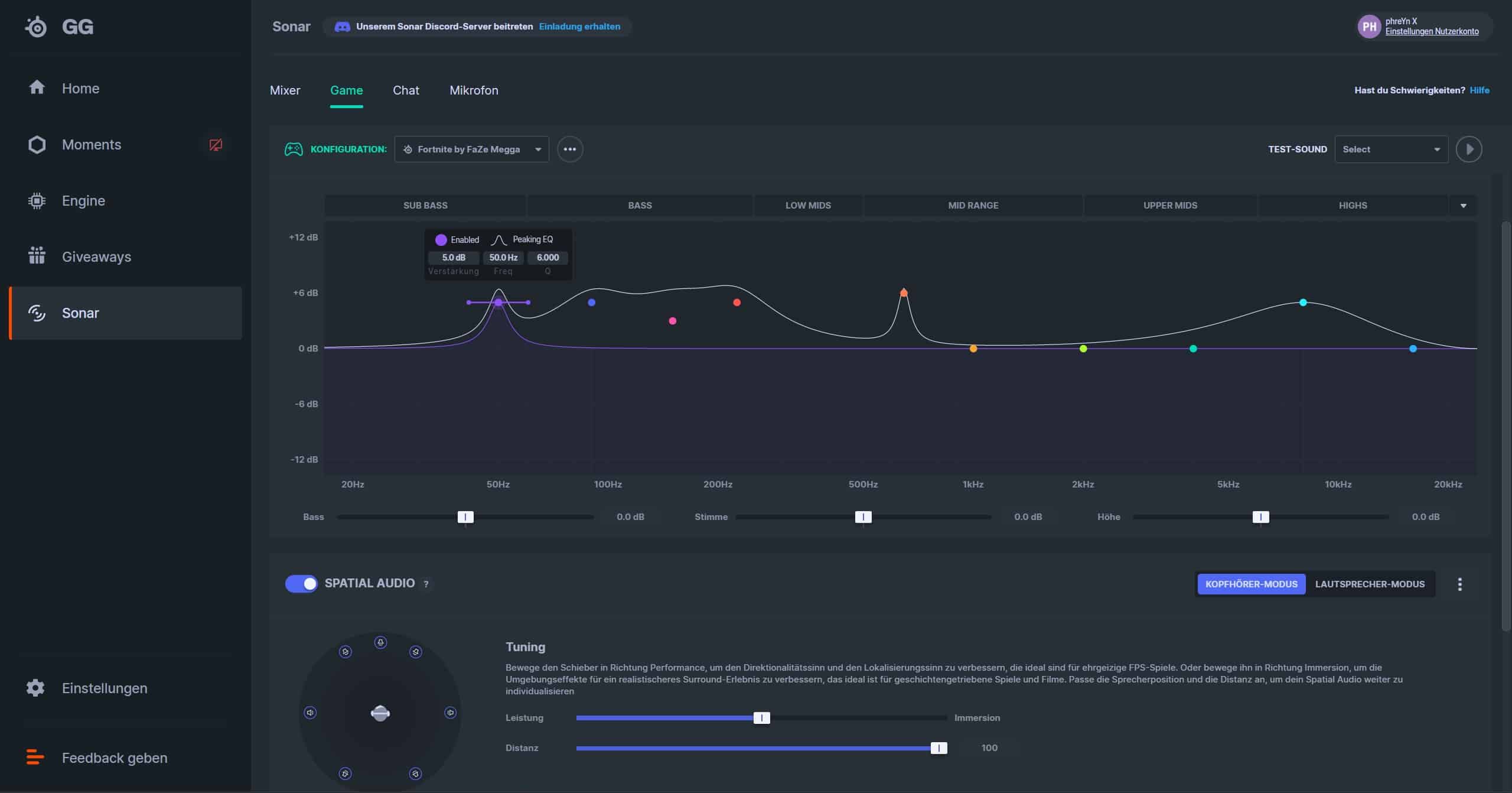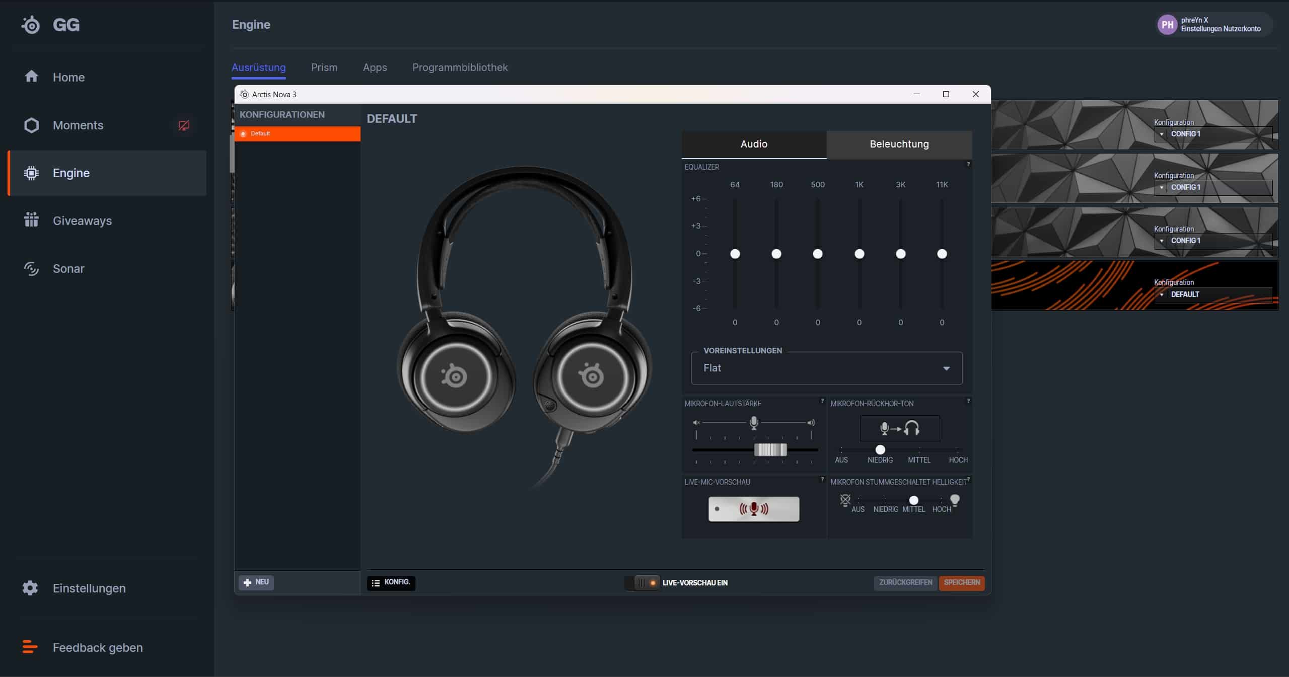 Als Begleit-Software kommt einmal mehr SteelSeries GG zum Einsatz. Mit dem Unterschied, dass du das SteelSeries Arctis Nova 3 in der darin befindlichen Engine feinjustieren und in Sonar sogar noch weiter tunen kannst.