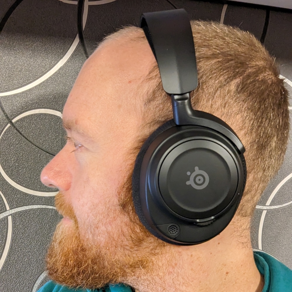 Konnten Arctis Nova 1 und Nova 3 bereits in Sachen Tragekomfort ein Ausrufezeichen setzen, fällt dieser beim Arctis Nova 7 Wireless sogar noch einmal höher aus. Die weichen, rund zwei Zentimeter hohen Stoffpolster und das Skibrillen-Kopfband sorgen dafür, dass auch bei langen Gaming-Sessions nichts drückt oder schmerzt.
