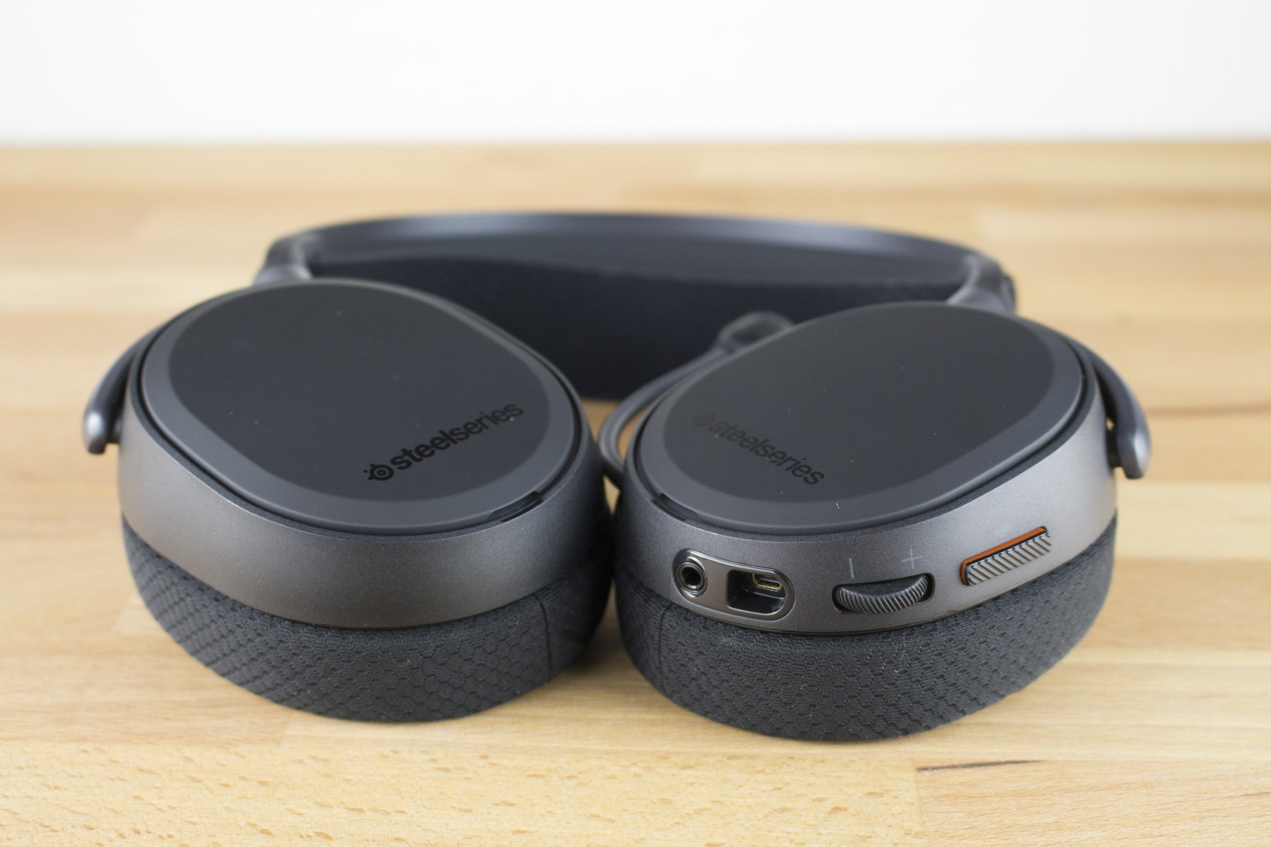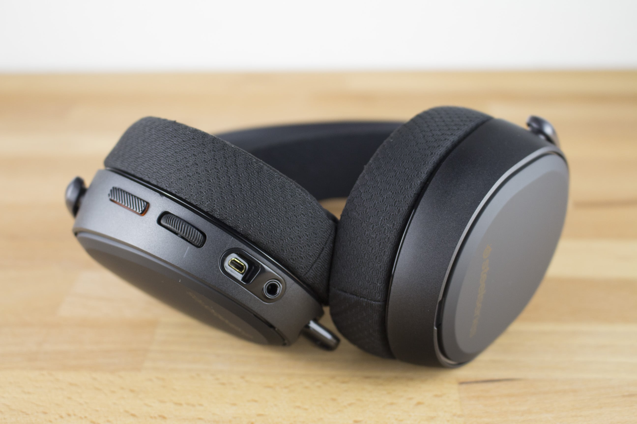 An der linken Ohrmuschel, in der sich auch das Mikrofon befindet, befindet sich außerdem ein Lautstärkerad sowie eine Taste zum Stummschalten des Mikrofons. Für das Mikrofon lassen sich unterschiedliche Beleuchtungsfarben je nach Status einstellen.