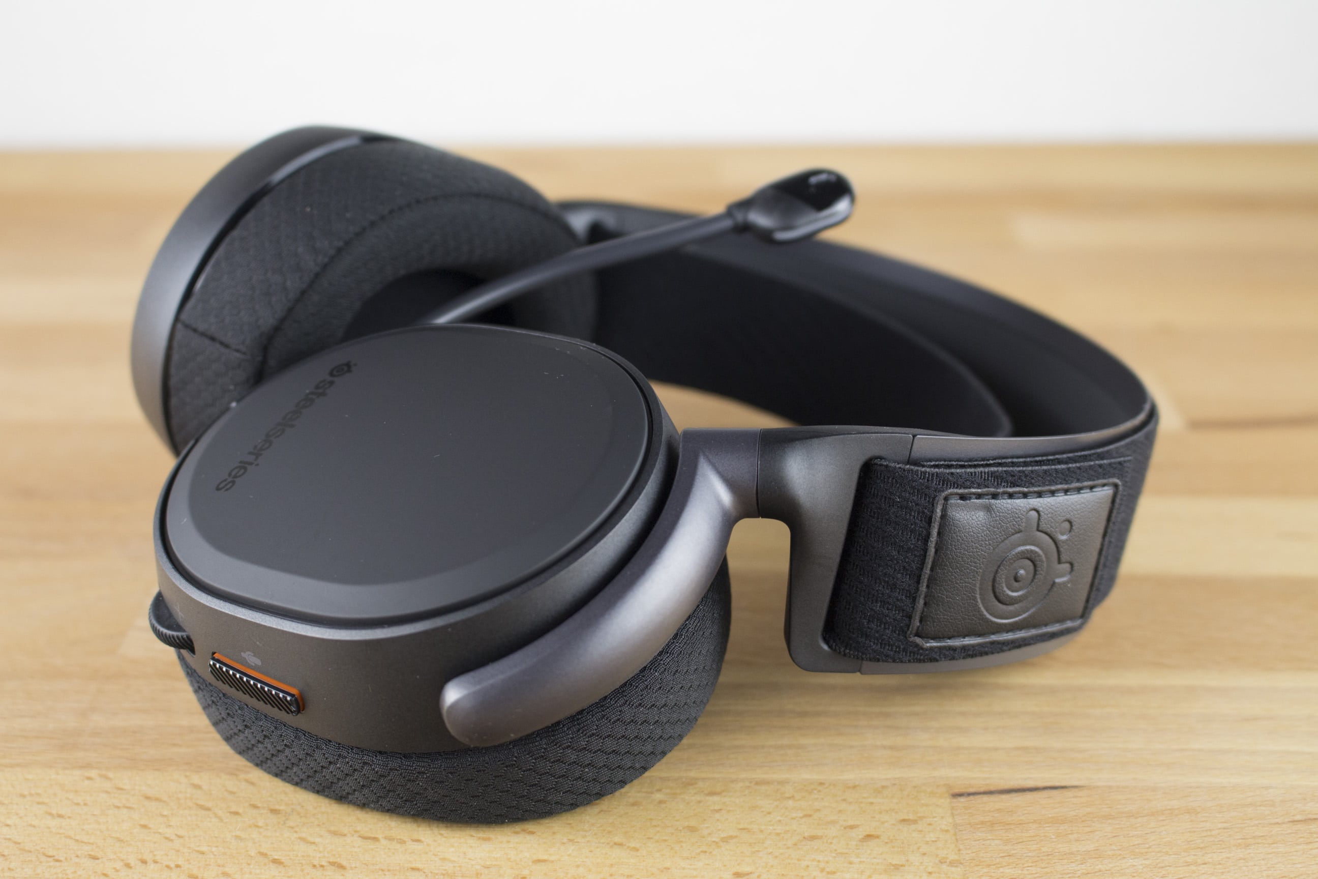 Auffällig ist darüber hinaus die starre Ausrichtung des Kopfbandes. Bei vielen anderen Kopfhörern dient es der Anpassbarkeit an den Schädel des Trägers – nicht so beim SteelSeries Arctis Pro. Hierfür existiert ein eigenes Textilband, das zusätzlich zum Kopfband angebracht ist, und mittels Klettverschluss an die anatomischen Gegebenheiten des Trägers angepasst werden kann. Das Vorhandensein zweier Bänder unterscheidet das Arctis Pro optisch von zahlreichen anderen Headsets.