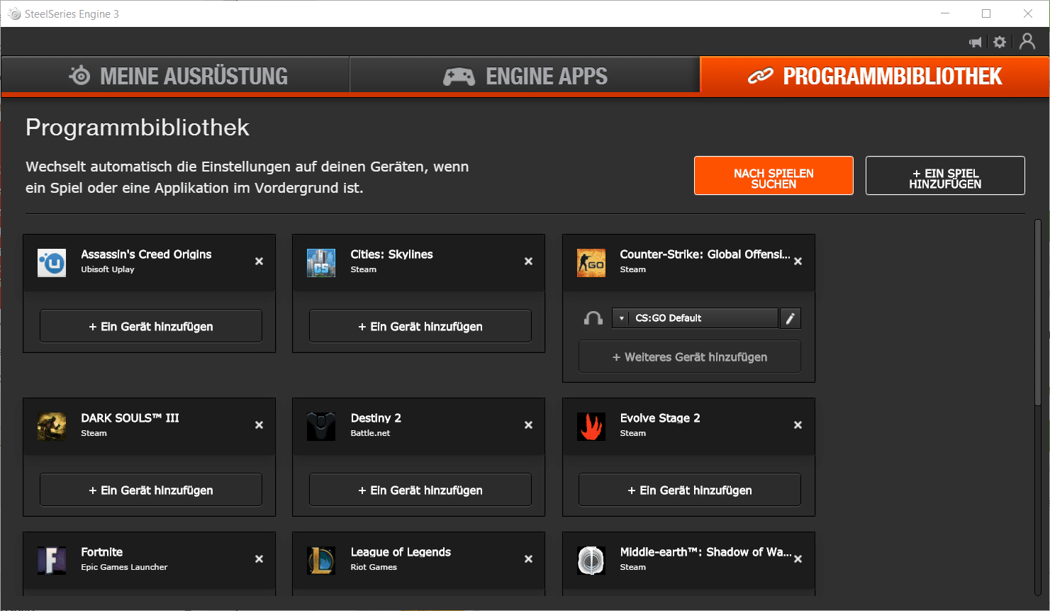 Die Software unterstützt auch verschiedene Profile, die automatisch je nach gestarteter Anwendung gewechselt werden können. Mit speziellen Engine Apps ist außerdem eine Synchronisierung der RGB-Beleuchtung möglich.