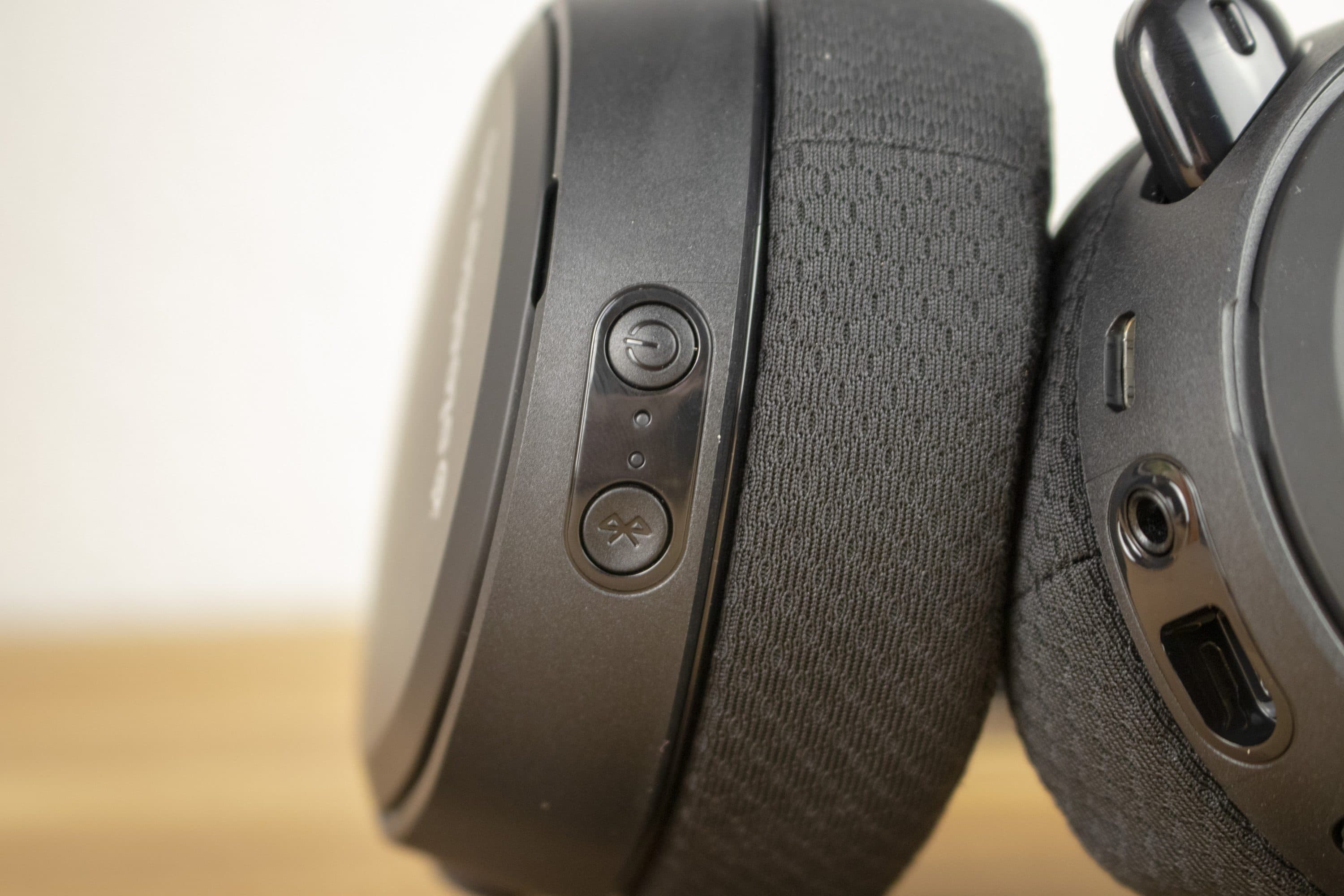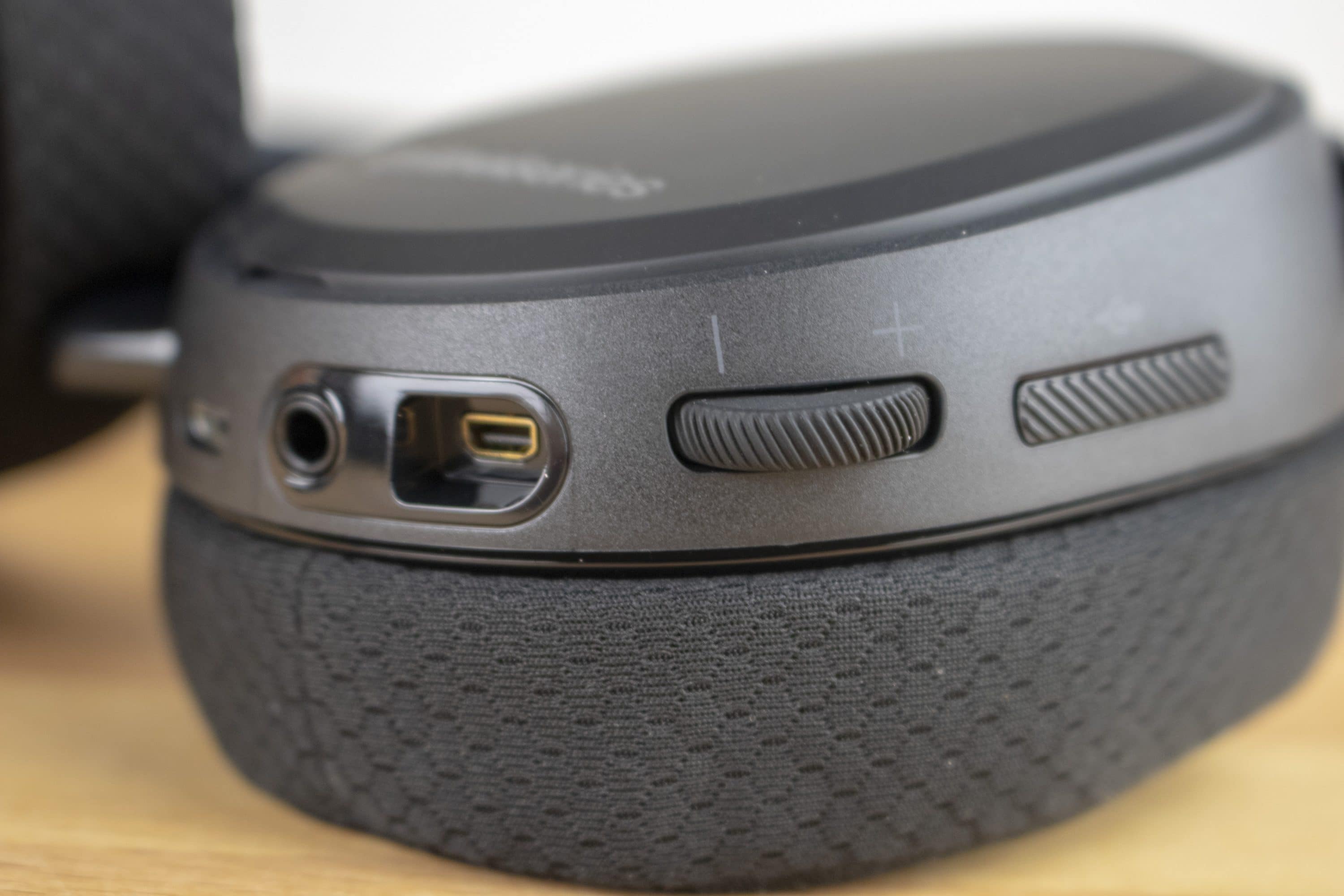 An beiden Ohrmuscheln sind Knöpfe untergebracht, mit denen verschiedenste Aktionen ausgelöst werden können. SteelSeries hat jedem Knopf eine andere Form verpasst, was dafür sorgt, dass die einzelnen Tasten sehr gut unterschieden werden können. Auch ein Klinkenanschluss wurde an der Ohrmuschel untergebracht. Wer also lieber per Kabel verbunden wird, hat die Möglichkeit dazu.