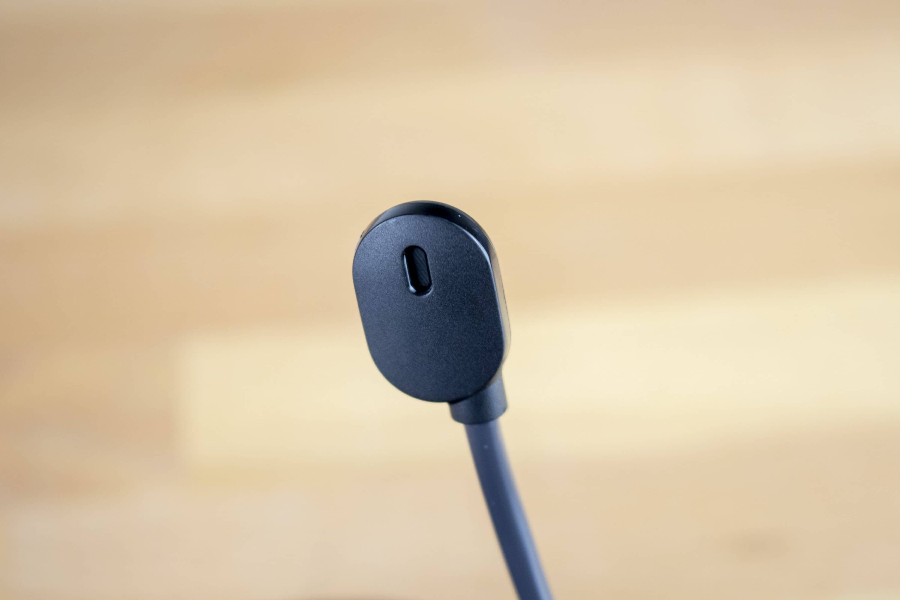 Das Mikrofon des Headsets ist an der linken Ohrmuschel befestigt. Es kann hier auf einfache Weise herausgezogen und wieder eingefahren werden. Ein- und ausgeschaltet wird es indes über einen Knopf, welcher sich ebenfalls an der linken Ohrmuschel befindet. Nach einem Druck hebt oder senkt der Knopf sich, sodass sofort festgestellt werden kann, ob das Mikrofon ein- oder ausgeschaltet ist.