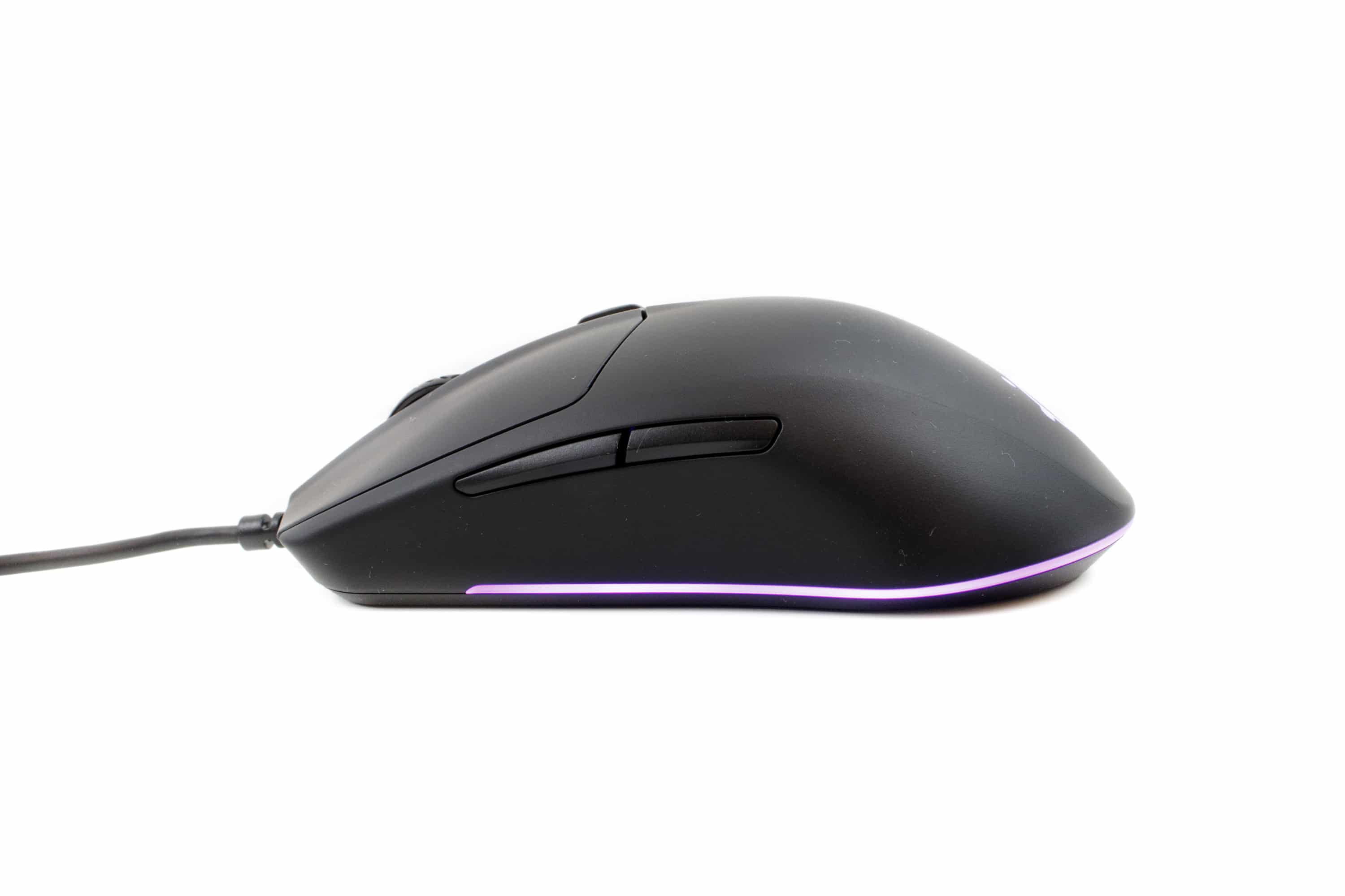 Die Gaming-Maus ist mit insgesamt sechs Tasten ausgestattet. Das ist nicht sonderlich viel, entspricht jedoch dem der meisten Gaming-Mäuse. Die linke und rechte Maustaste sind mit Zippy DF3 Schaltern bestückt, die bis zu 60 Millionen Klicks gewährleisten sollen. Das ist schon mal eine Ansage. Und das bei einer Budget-Maus.