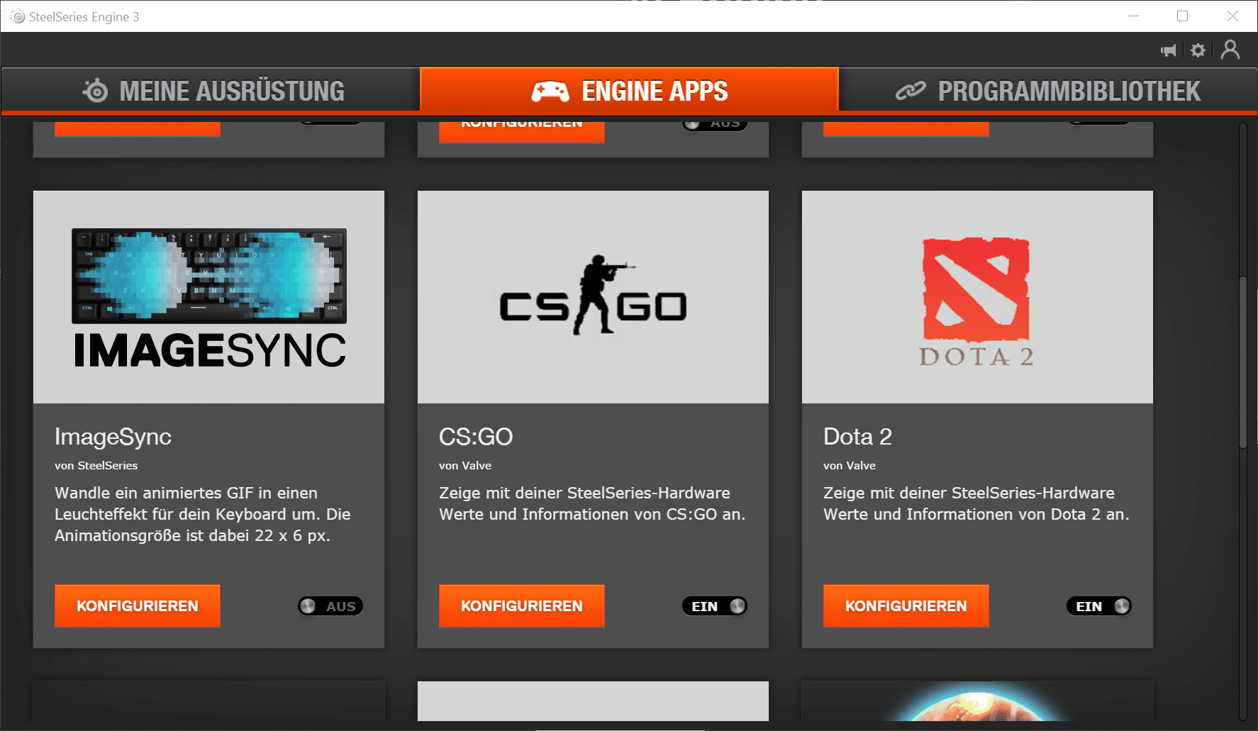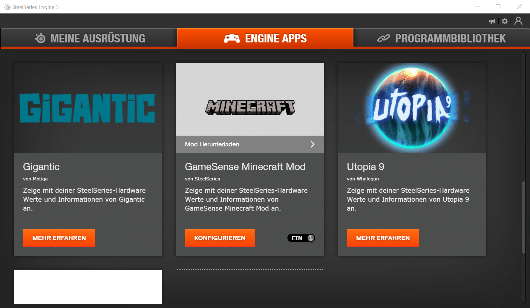 Positiv hervorzuheben sind die Engine Apps, die eine Synchronisierung der Beleuchtung mit verschiedenen Anwendungen erlauben. Die Auswahl ist hier jedoch noch relativ begrenzt. Unabhängig davon kann man jedoch auch von jeder Anwendung ein eigenes Mausprofil laden lassen.