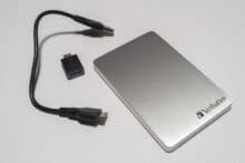 Wer sich größere Datenraten wünscht, für den bietet Verbatim auch externe SSDs an, die preislich jedoch zur Zeit noch wesentlich höher angesiedelt sind und zudem weniger Speicherplatz bieten.