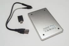 Mit 150 Gramm ist die Festplatte angenehm leicht und mit 0,9 cm auch recht dünn. Im Betrieb surrt sie kaum hörbar und erzeugt auch leichte Vibrationen. Beides ist typisch für klassische Magnet-Festplatten, die im Betrieb mit hoher Drehzahl rotieren.