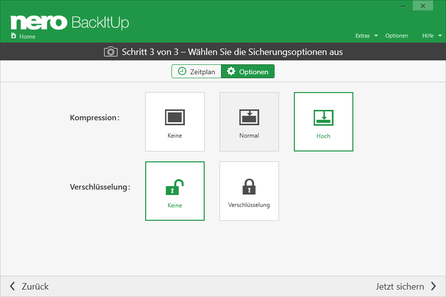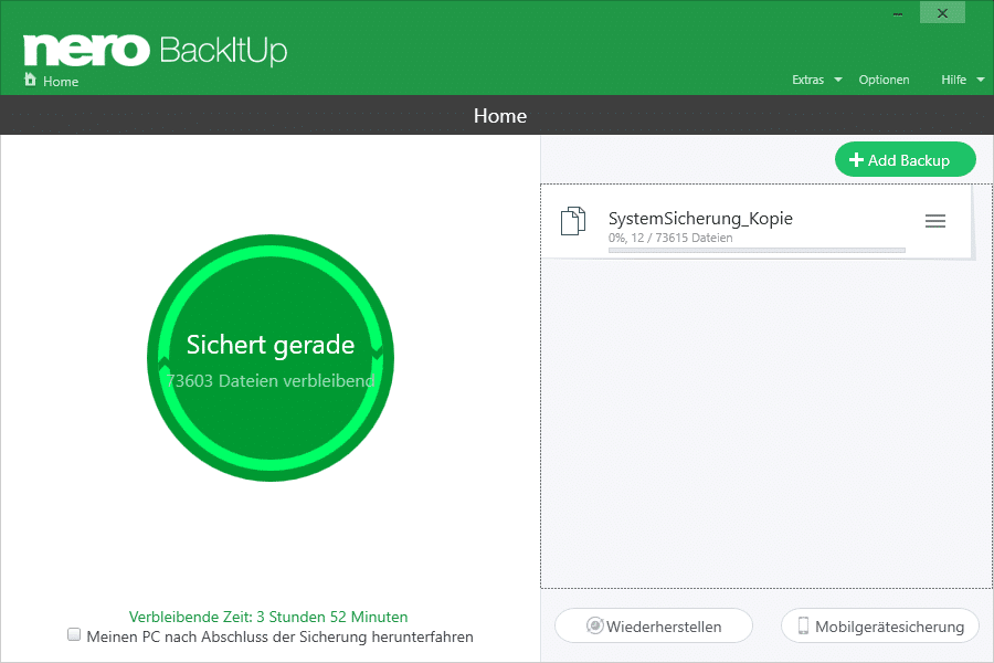 Die Backup-Software Nero BackItUp ist zwar übersichtlich und leicht zu bedienen, besitzt jedoch im Vergleich zu manch kostenloser Alternative vergleichsweise wenige Einstellungsmöglichkeiten.