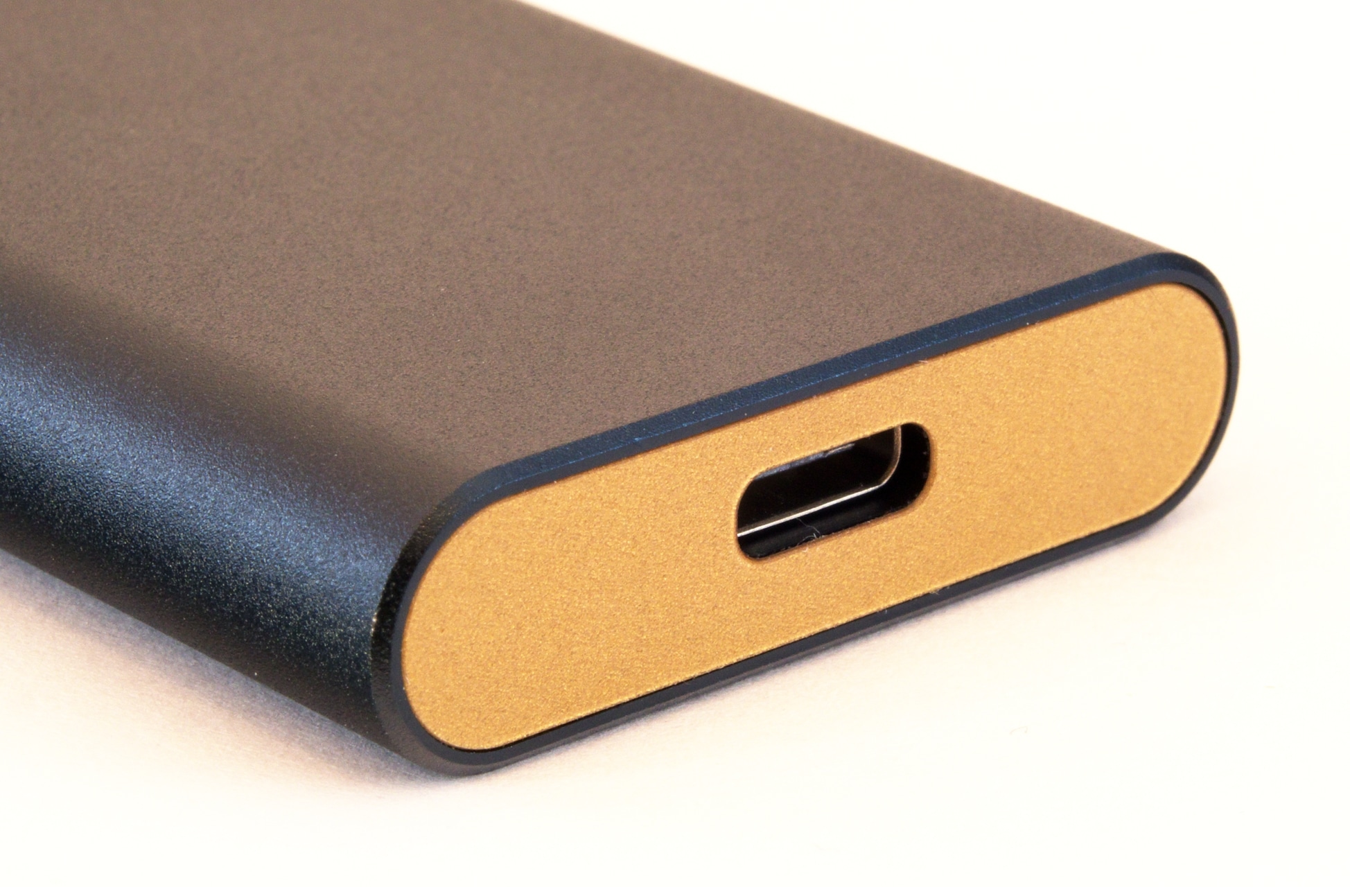 Ebenso hochwertig präsentiert sich auch das Gehäuse der PD1000, das man wohl als „auffällig unauffällig“ beschreiben kann. Der seitlich abgerundete Metallquader aus Aluminium sieht, unserer subjektiven Meinung nach, hervorragend aus und ist auch entsprechend verarbeitet: Optische Auffälligkeiten sind weder am Metall noch an den Übergängen zu finden, die SSD liegt gut in der Hand und ist sehr verwindungssteif. Hier lässt sich nichts kritisieren.