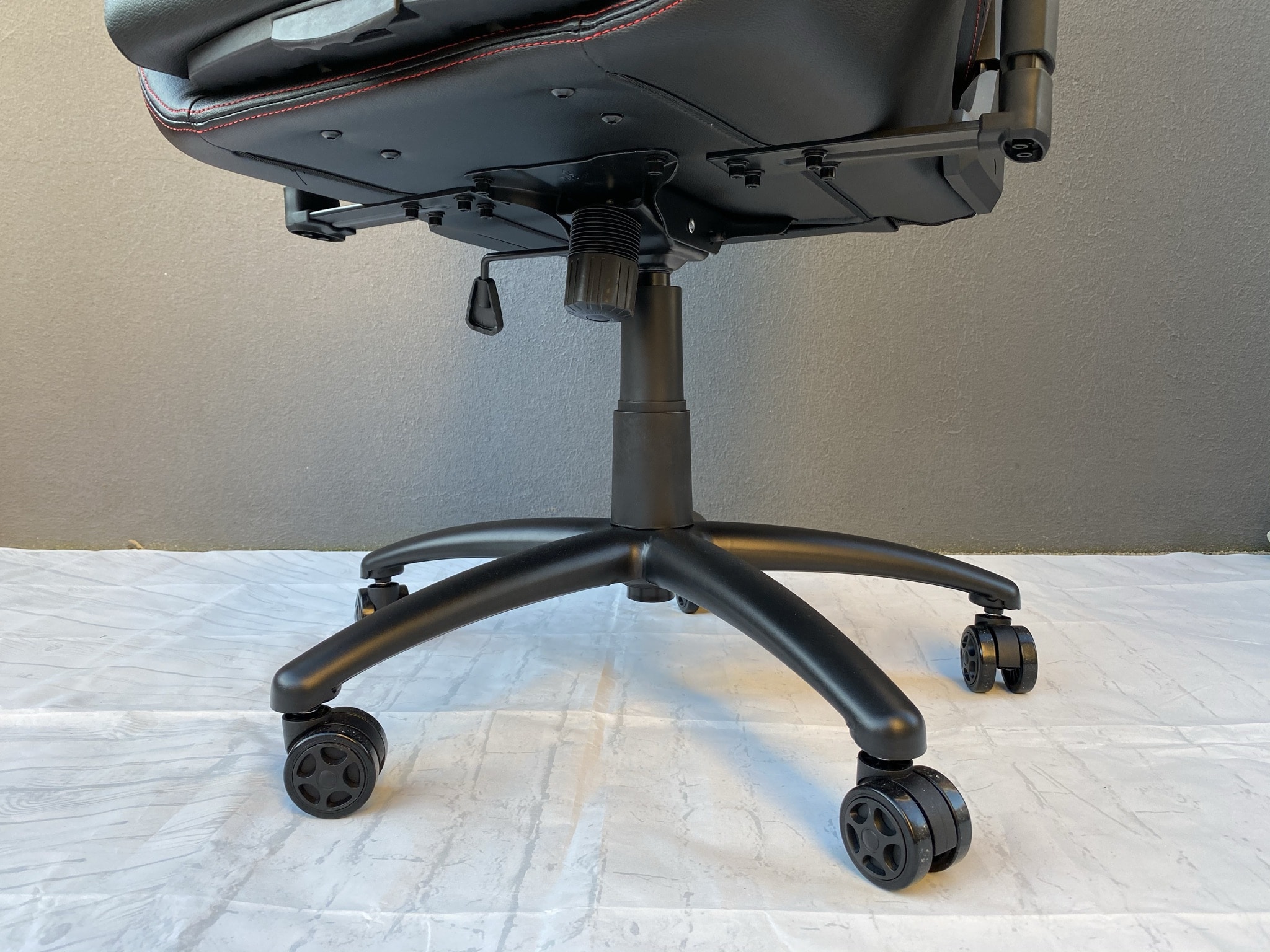 Einiges an Konfigurationsmöglichkeiten hat heutzutage jeder Gaming-Stuhl zu bieten. Deshalb ist die Umsetzung dieser sehr wichtig. Der Alphaeon S3 ist zwar am „Standard“ angelehnt, jedoch hervorragend mit guter Qualität umgesetzt. Die 3D-Armlehnen lassen sich nach oben, vorne und hinten bewegen. Dabei rastet alles angenehm ein und lässt sich gleichzeitig auch problemlos bewegen. Der Stuhl lässt sich natürlich auch in der Höhe verstellen – dazu hat man, wie üblich, einen kleinen Hebel an der rechten Seite. Dieser lässt sich etwas weiter reindrücken und herausziehen. Maximal kann eine Höhe von 44 cm und minimal von 36 cm erreicht werden. Etwas größere Menschen, wie unsere Testpersonen, sitzen auf den Alphaeon S3 höher und deutlich bequemer.