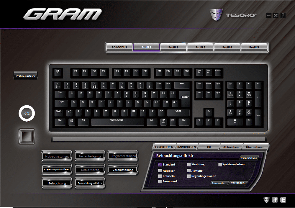 Kommen wir nun zu dem großen Schwachpunkt der Tastatur. Die Software bzw. der Treiber ist leider noch nicht ausgereift, wodurch die Gram Spectrum leider Potenzial verschenkt. Positiv hervorzuheben ist allerdings, dass man die Software nicht unbedingt benötigt.