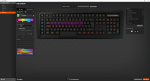 Das größte Highlight sind die 16,8 Millionen Farben in acht verschiedenen Helligkeitsstufen der LED-Beleuchtung. Die Apex M800 kann über die Software frei eingestellt werden, sogar die Beleuchtung. Es kann jede Taste mit einer anderen Farbe belegt werden, besonders das SteelSeries-Logo. Selbst verschiedene Beleuchtungsmodi sind für diese mechanische Tastatur kein Problem. Die Farbübergänge setzten das Ganze noch mehr in Szene, da diese fließend sind! Bei Inaktivität gibt es einen leichten Farbverlauf, welcher sich nach ein paar Sekunden verändert. Die Farbübergänge sind durch die LEDs wieder ein Augenschmaus. Natürlich sind das nur die Standardeinstellungen und der Leerlauf kann beliebig angepasst werden. Beim Tippen hebt sich die gedrückte Taste farblich hervor. Nach ein paar Sekunden geht es wieder zurück in die Ursprungsfarbe.