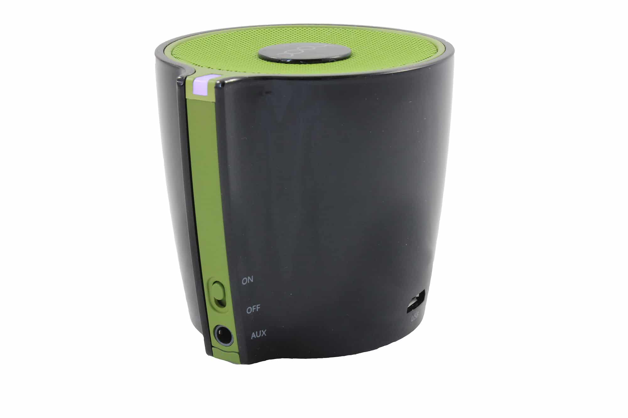 Unsere „schwarze“ Version setzt auf eine schwarze Ummantelung mit grünem Akzent, wie ihr auch auf den Bildern sehen könnt. Auf der Unterseite befindet sich außerdem ein grauer Gummiring, der für die nötige Haftung sorgt damit der Lautsprecher nicht verrutscht bzw. einen festen Stand hat. Diese Aufgabe erledigt der Gummiring sehr gut.