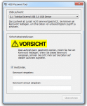 Das auf der Festplatte beiliegende Programm HD Password Tool funktionierte im Test ohne Probleme. Man installiert die Software und kann dann für die Festplatte ein Passwort festlegen. Andere angeschlossene externe Festplatten sind nicht verschlüsselbar, die Festplatte gibt sich dem Programm also besonders zu erkennen. Nach dem Festlegen eines Passworts kann man die Festplatte weiter nutzen – allerdings nur bis man sie vom PC entfernt hat. Sobald man sie erneut anschließt meldet sich das Programm wieder zu Wort und möchte das Passwort haben. Sollte man das Programm nicht installiert haben, wird die Festplatte gar nicht erst angezeigt – zumindest nicht unter Windows.