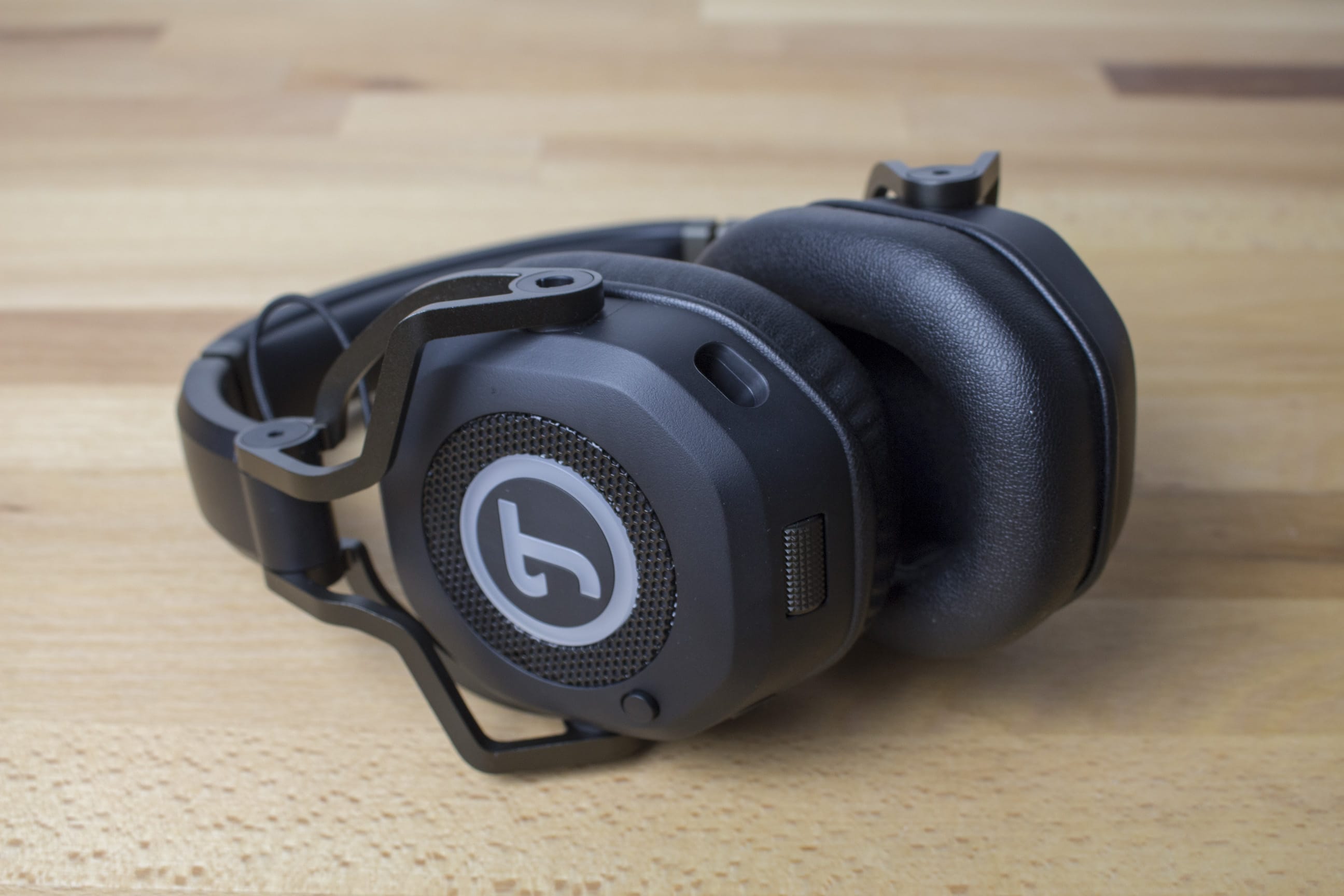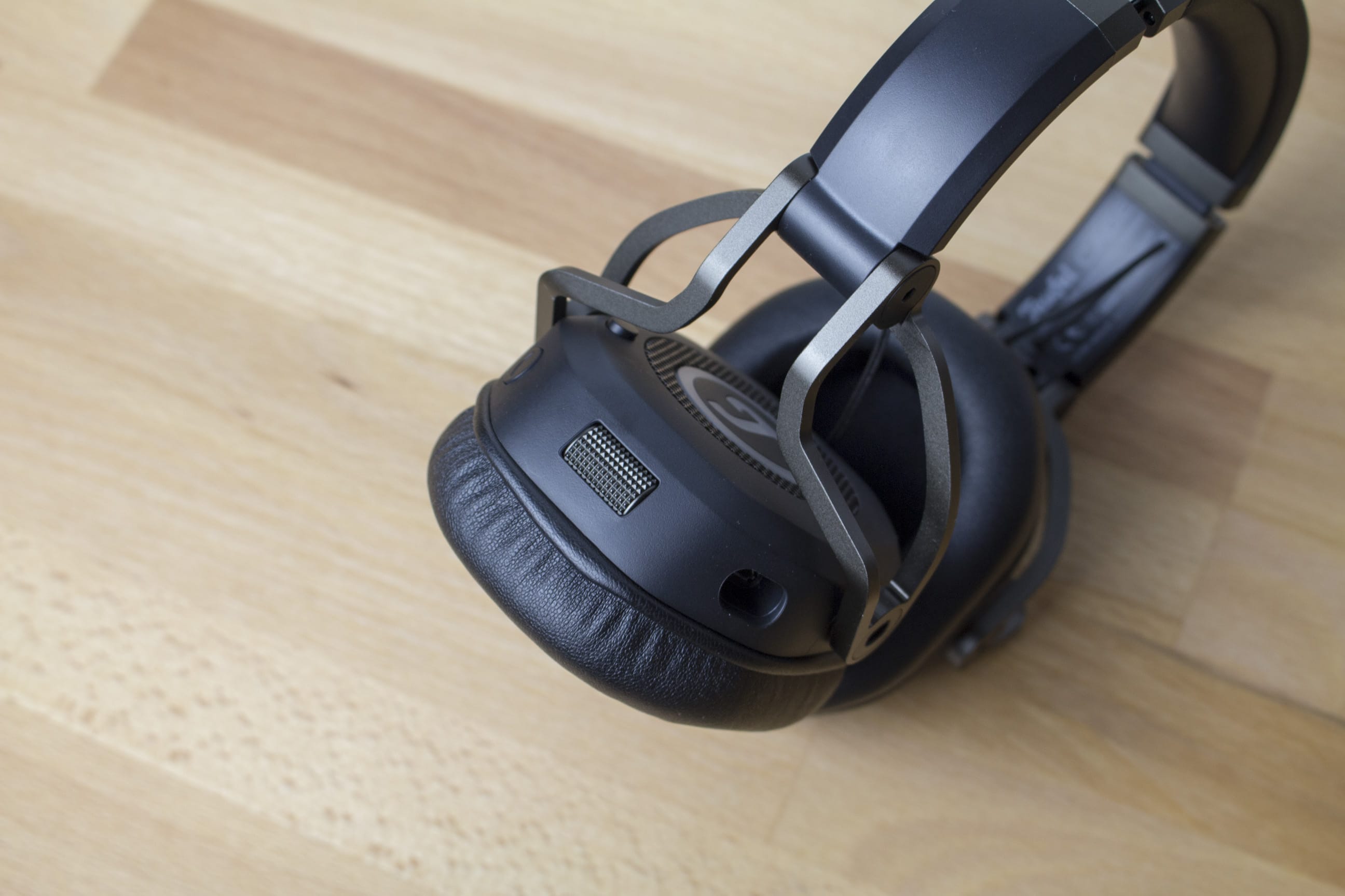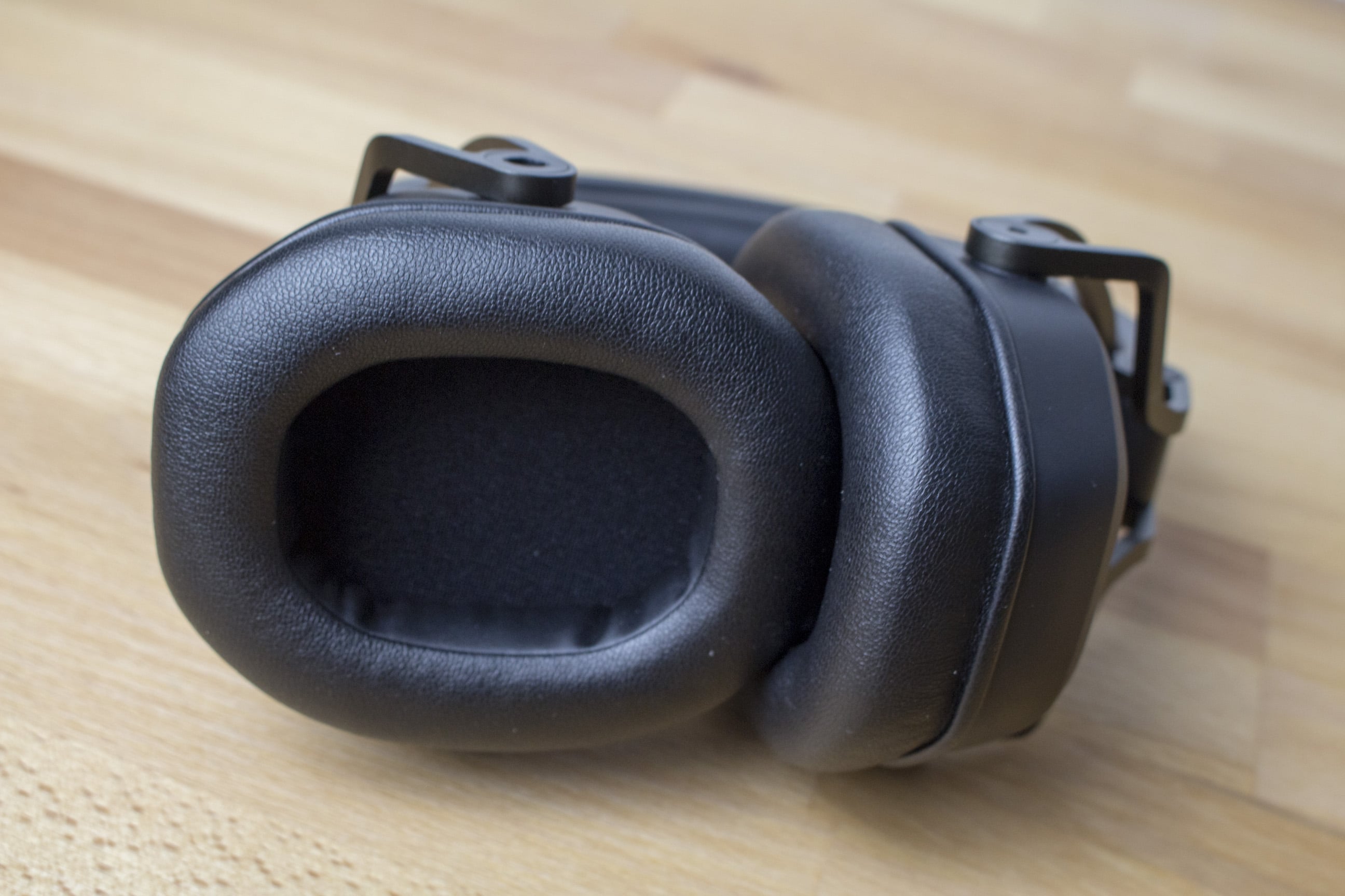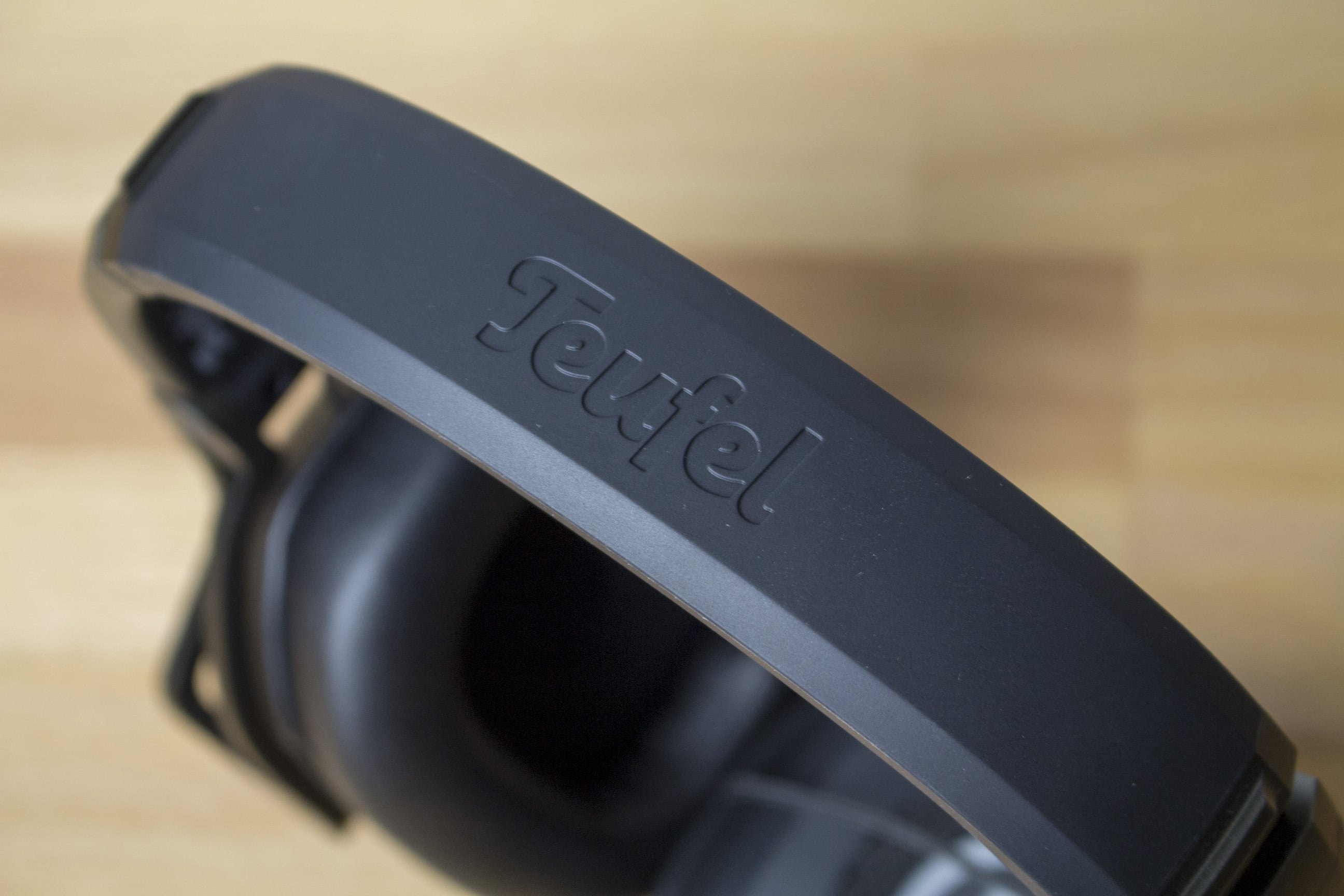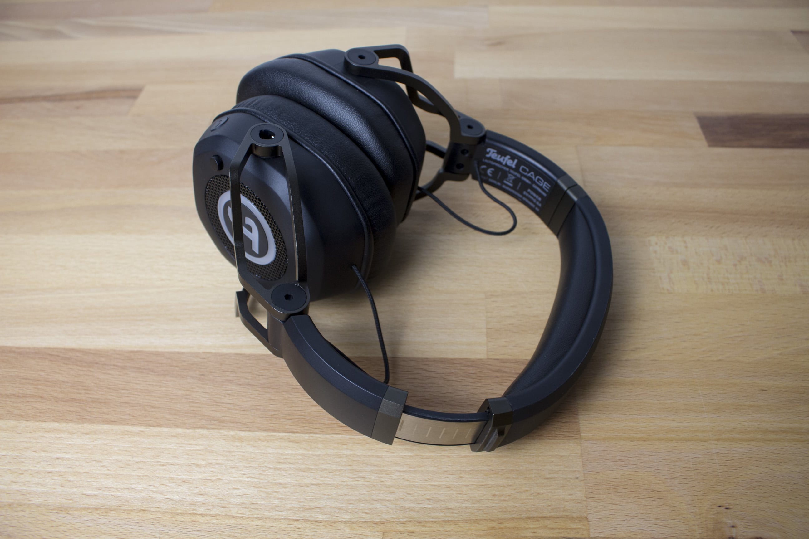 Auf den Ohrmuscheln ist das wiedererkennbare Teufel-Logo zu finden. Dieses erstrahlt beim Anschluss per USB in rot. Nutzt man dagegen das Klinkenkabel für die Verbindung zum Audiogerät, leuchtet das Teufel-Logo nicht und bleibt schlicht weiß. Für den richtigen Komfort der Ohren sorgen die dicken Ohrmuschelpolster, die mit einem Kunstlederbezug versehen sind. Diese sind geräumig und nehmen auch größere Ohren auf. Der Kunstlederbezug sorgt zwar nicht für schwitzende, jedoch für warme Ohren. Da man die Ohrpolsterung relativ leicht entfernen kann, hätte ich mir hier eine alternative Polsterung gewünscht. Zur Zeit liefert Teufel jedoch keine Alternativen und auch kein nachkaufbares Zubehör. Dennoch ist das Teufel Cage komfortabel zu tragen, dafür sorgen die flexiblen Aufhängungen der Treiber, der anpassbare Kopfbügel sowie die weiche Polsterung von Kopf und Ohren.