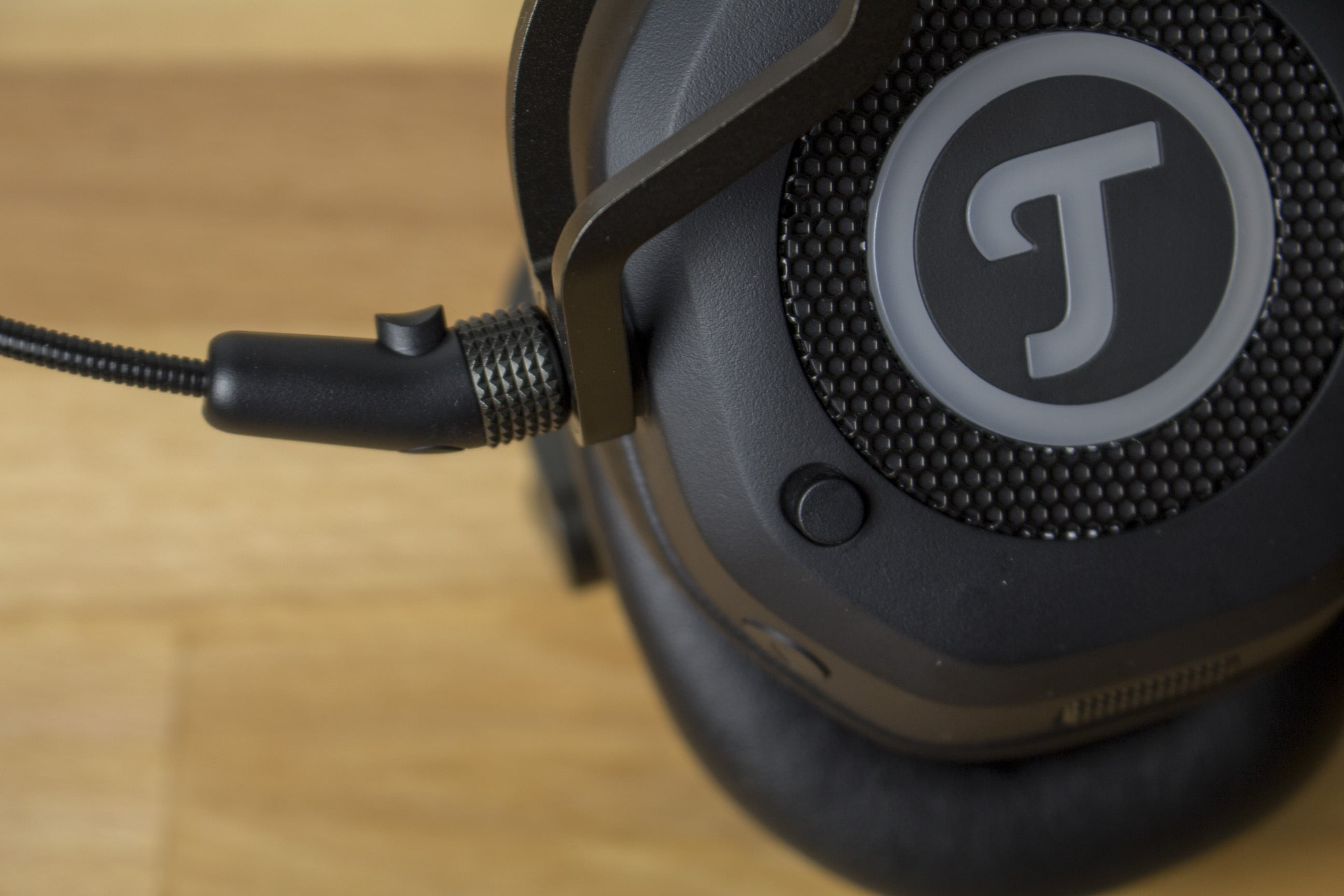 Die Anschlüsse sowie die Bedientasten befindet sich alle an einer Hörmuschel. Die Klinkenanschlüsse befinden sich auf selber Höhe vorne und hinten. Da sie multifunktional sind, kann das Headset einfach gedreht werden, um das Mikrofon links oder rechts zu haben. An der Unterseite befindet sich ein Lautstärkerad, das man deutlich erfühlen kann. Bei der Nutzung kann man es aber auch deutlich hören. Auch eine Multifunktionstaste ist vorzufinden, die jedoch leider nur über den Klinkenanschluss funktioniert. Am Smartphone können somit bequem Anrufe angenommen werden oder die Musikwiedergabe gesteuert werden. Am PC per USB ist die Taste ohne Funktion, obwohl man hier noch deutlich mehr machen könnte. Des Weiteren gibt es einen kleinen Schalter, der den Mikrofon-Output steuert. Bei gleichzeitiger Verwendung von USB und Klinke kann somit bequem umgeschaltet werden. Du bist mitten im hitzigen CS:GO-Gefecht und möchtest deine Teamkameraden weiterhin hören, musst aber ein wichtiges Telefonat führen? Kein Problem!