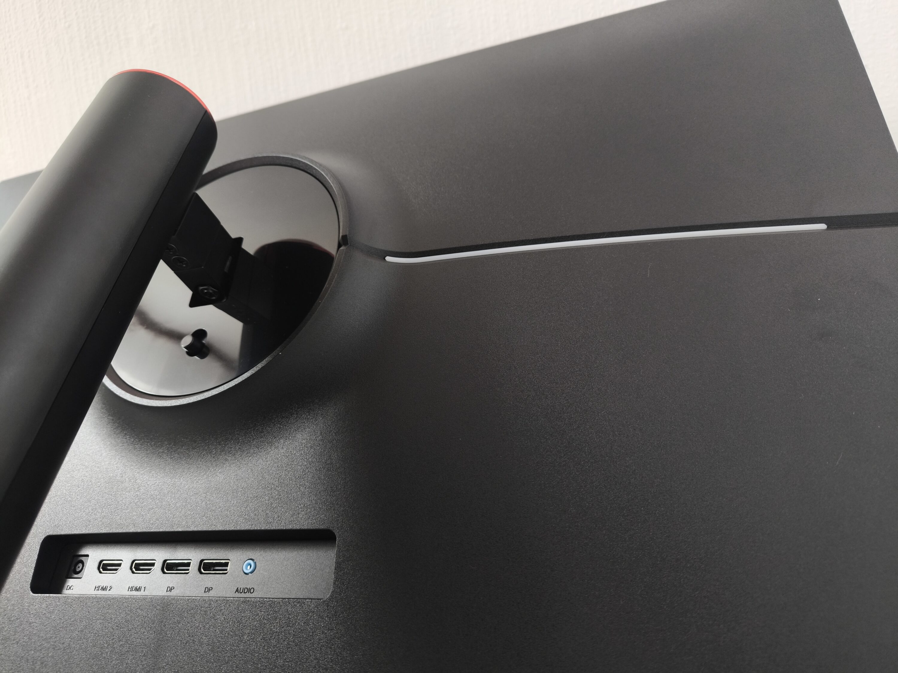 Positiv hervorzuheben ist auch die Aufrüstung der Anschlüsse auf den neuesten Standard, was gerade bei den beiden HDMI-2.1-Anschlüssen deutlich wird. Damit ist man für die Zukunft gerüstet und kann die Möglichkeiten der Konsolen bis auf die fehlende 4K-Auflösung ausschöpfen. Ein nettes Gimmick ist zwar die Hintergrundbeleuchtung, diese allein stellt aber kein kaufentscheidendes Kriterium dar. Letztendlich ist die LED-Leiste nämlich nur mittig angebracht und nicht mit den aus dem TV-Bereich bekannten Ambilights gleichzusetzen.