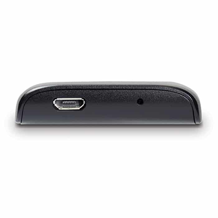 Der Adapter ist so groß wie die Handfläche und passt bequem in jede Hosentasche. In einer Handtasche sollte hoffentlich noch genug Platz dafür da sein. Der Adapter hat an der einen Seite einen MicroUSB-Anschluss zum Laden und auf der anderen Seite einen USB-Anschluss. Der Adapter kann die Festplatten mit Strom versorgen, denn das Netzteil ist ein K-Tec-Netzteil mit 2 Ampere bei 5 Volt. Es gibt auf der Seite mit dem Micro-USB-Anschluss einen Reset-Knopf. Nach Drücken dieses Knopfes werden alle Einstellungen zurückgesetzt und das WLAN des Adapters ist wieder ungesichert. Der Toshiba STOR.E Wireless Adapter hat einen 1 GByte großen Arbeitsspeicher und verfügt über einen 128 MByte großen Flashspeicher.