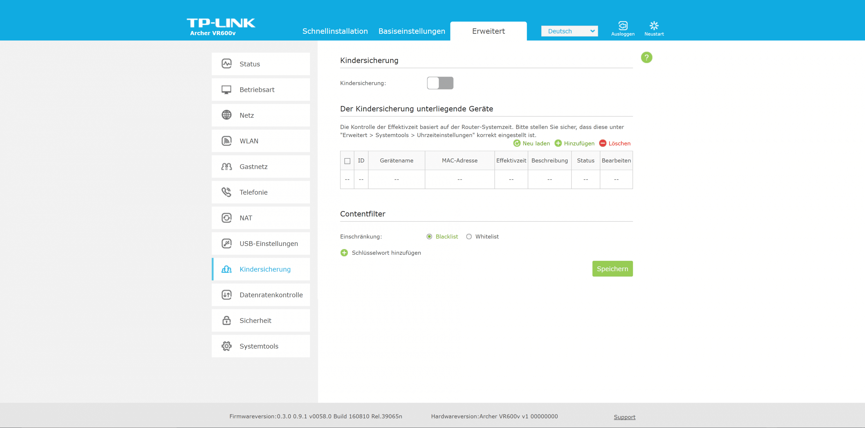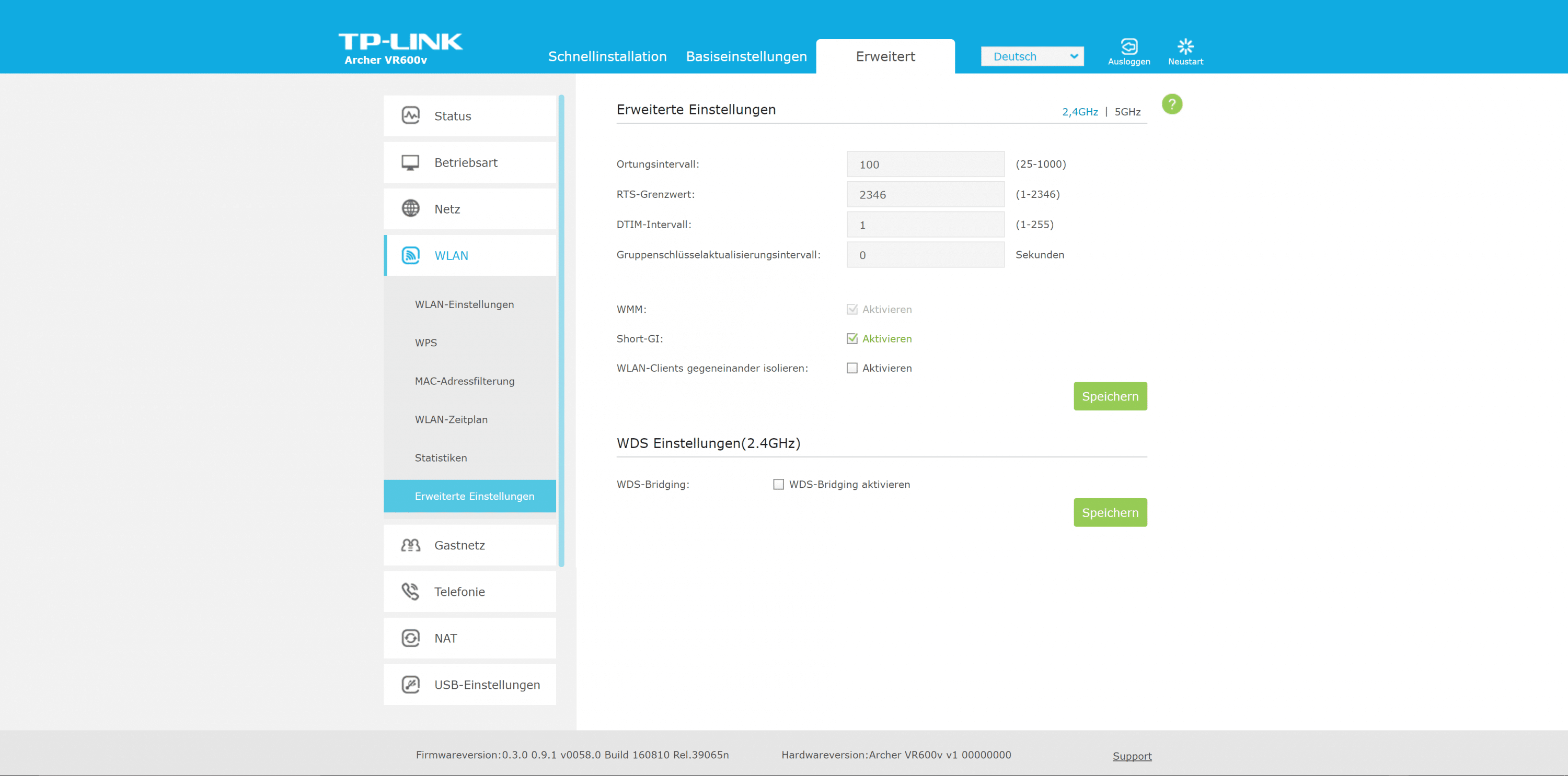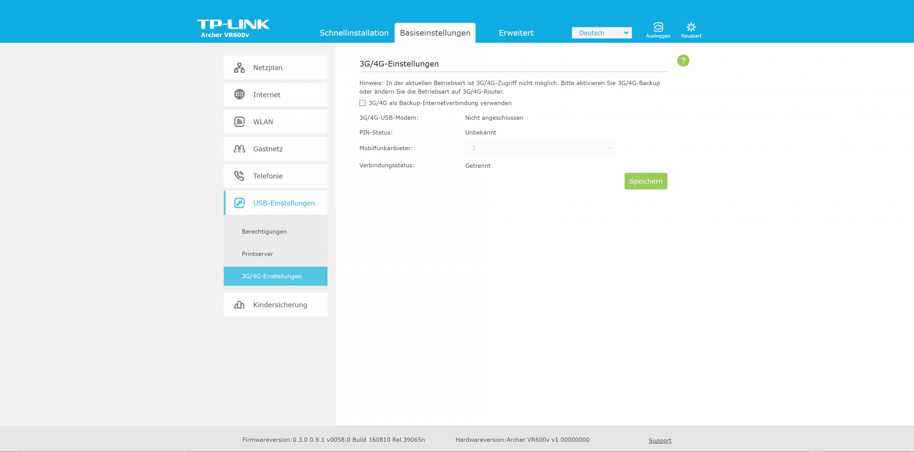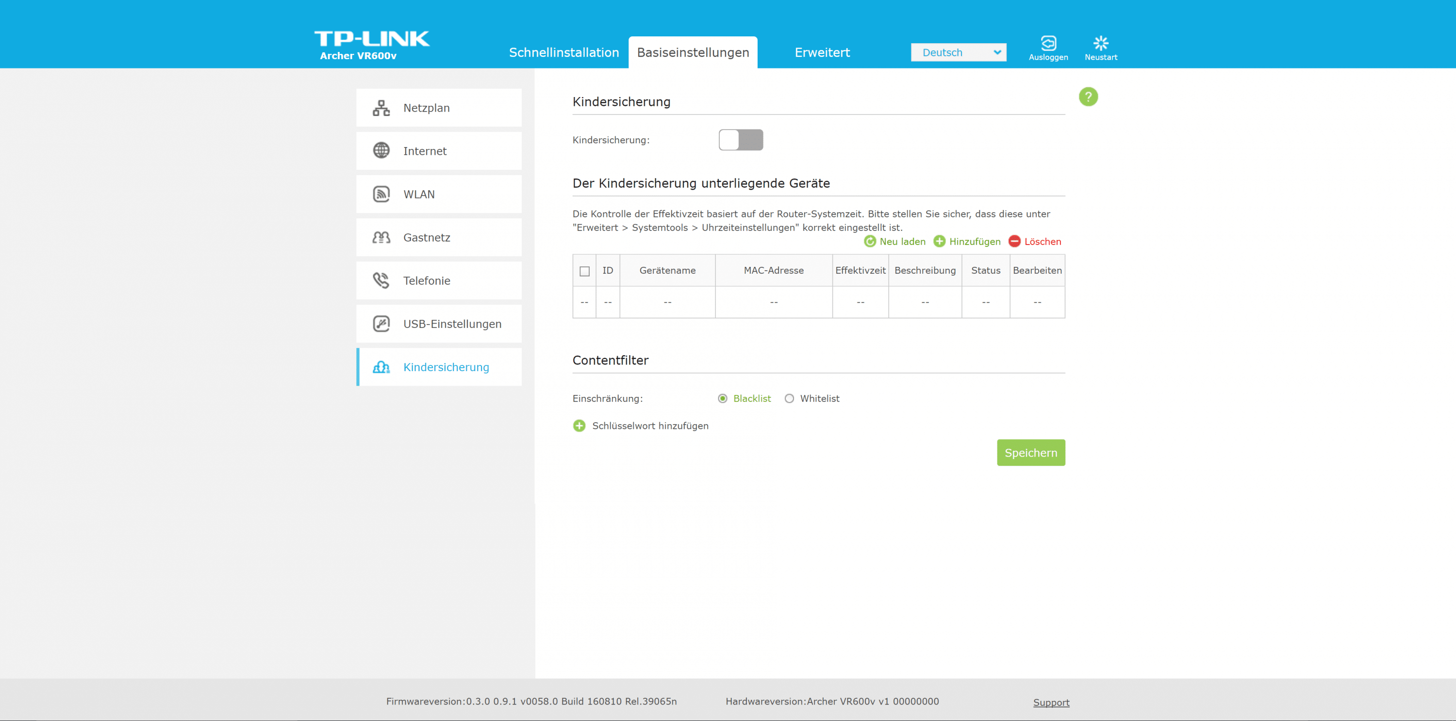 Beim Archer VR600v setzt TP-Link auf seine Standard-Benutzeroberfläche. Die zügig reagierende Oberfläche ist in drei Bereiche untergliedert. Der Assistent ist euch bei der Ersteinrichtung behilflich. Es folgen die Bereiche „Basiseinstellungen“ sowie „Erweitert“.