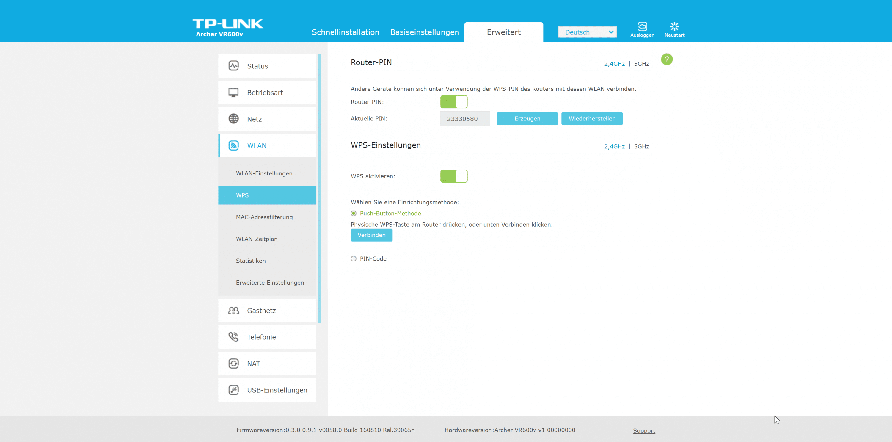 WLAN des Archer VR600v