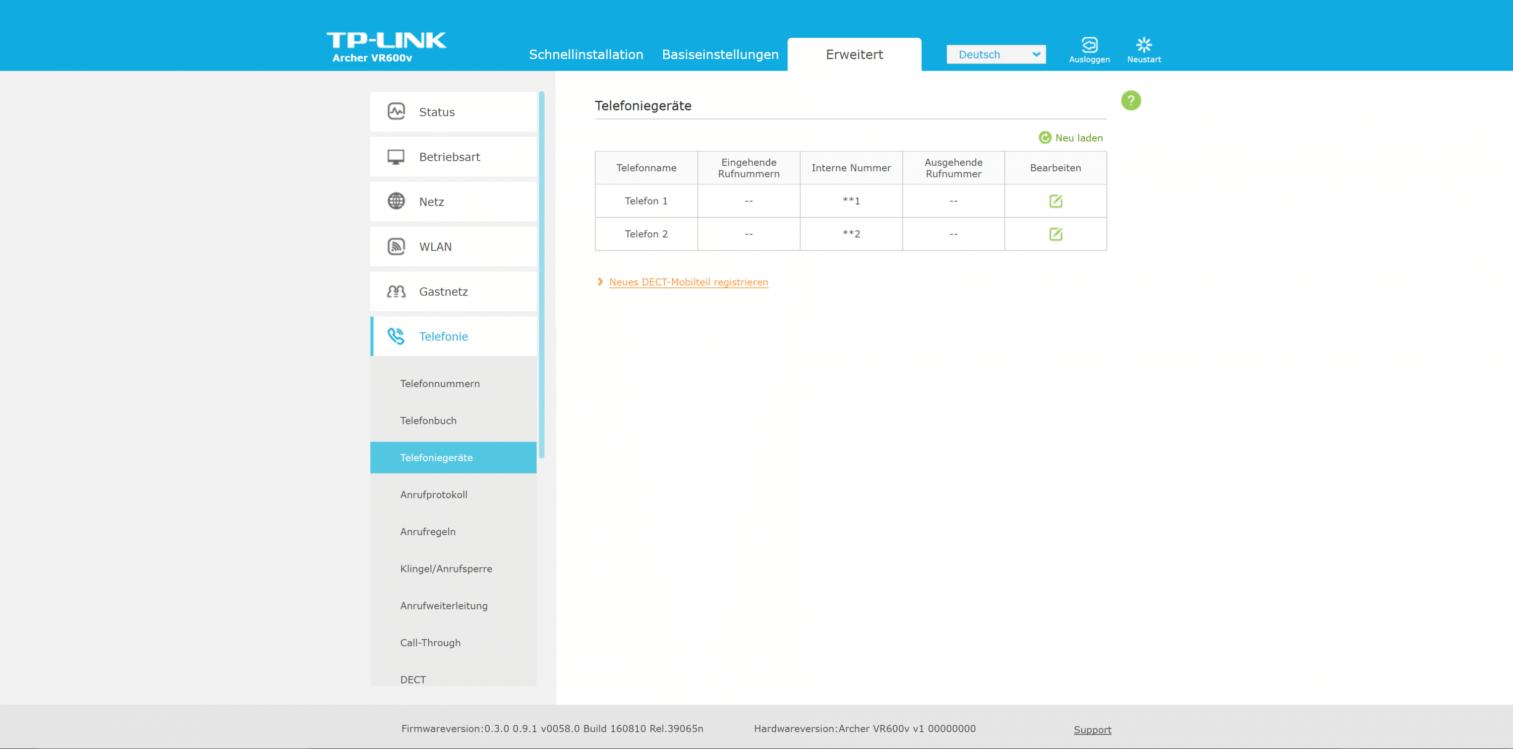| Physikalische Tasten | DECT, Power, WLAN, WPS, Reset |